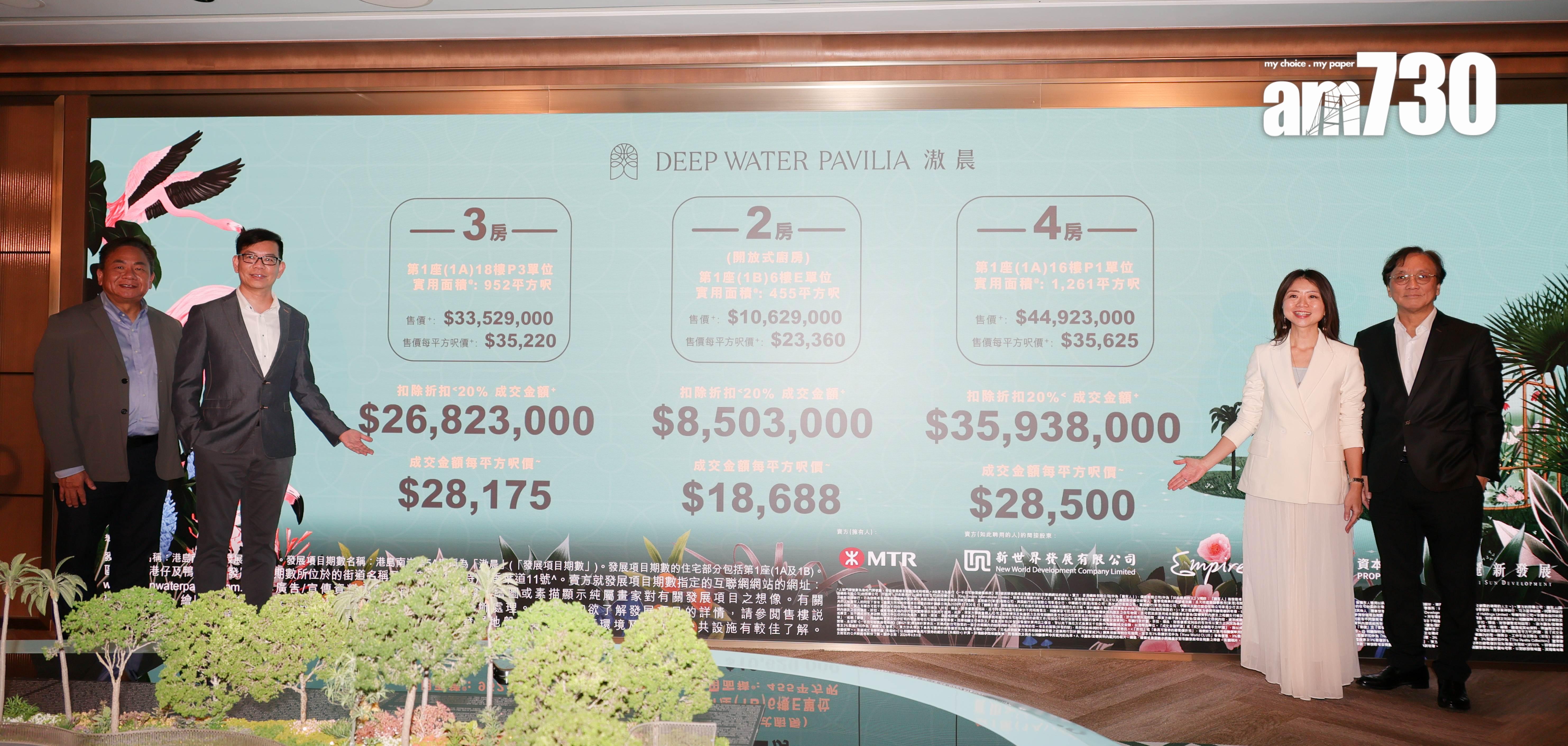 新世界發展(017)、帝國集團、資本策略地產(497)、麗新發展(488)及港鐵(066)合作發展的黃竹坑站港島南岸第5A期發展項目「滶晨」今日公佈首張價單,涉及101伙,選用120天現金付款計劃,連同所有折扣優惠,合共最高折扣20%,折實售價850.3萬元起,折實呎價18,688元起折實平均呎價20,932元。