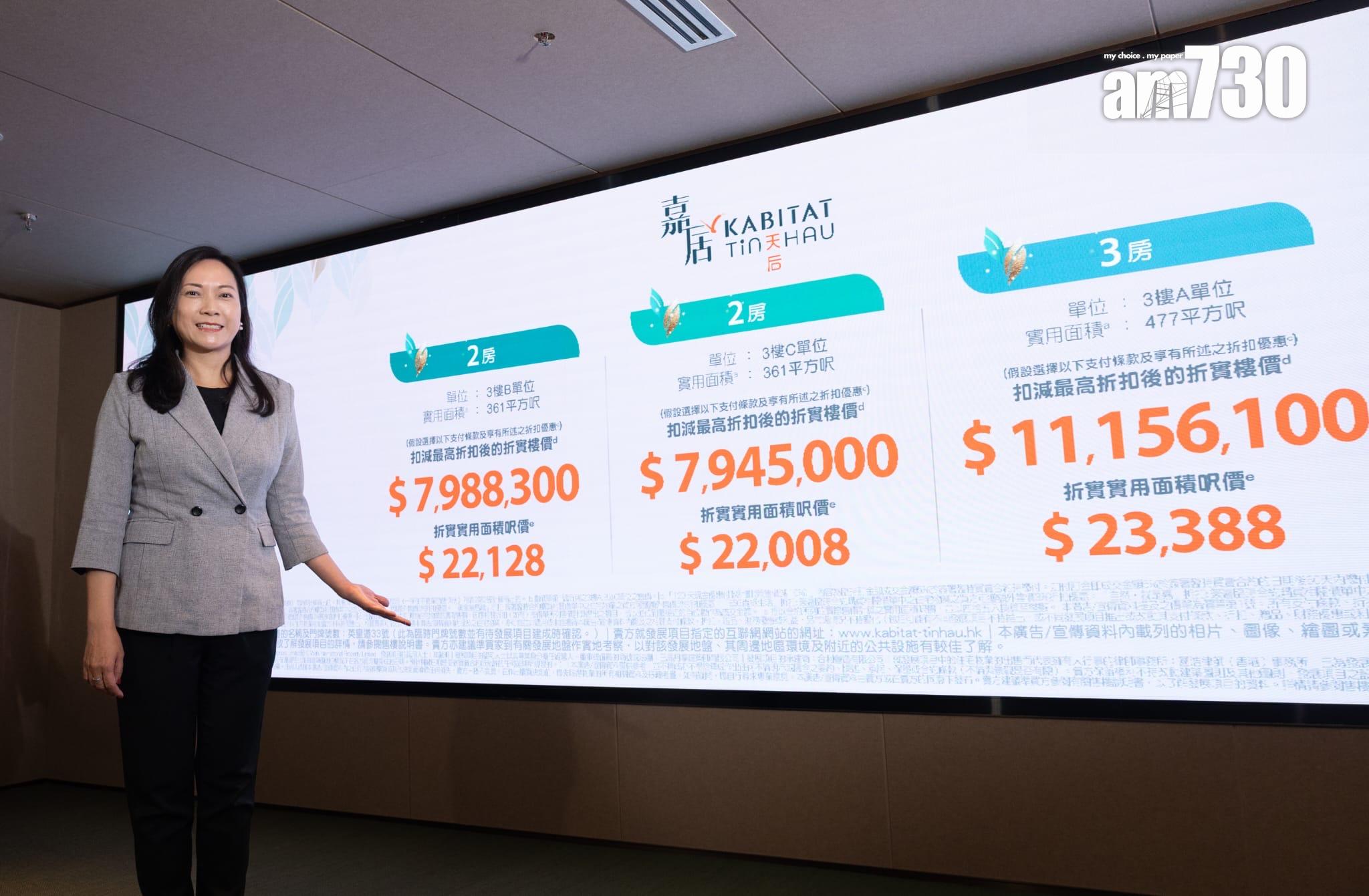 「嘉居.天后」首張價單包括23伙兩房及7伙三房,單位折實售價由794.5萬至1,343.6萬元,折實呎價介乎22,008至28,168元。最低折實售價及呎價單位同為3樓C室,實用面積361方呎,兩房間隔。市場預期,項目短期內公布銷售安排。