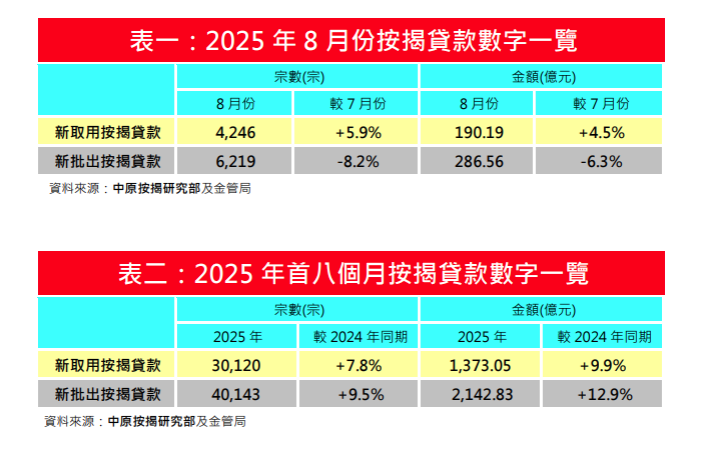 8月新取用按揭宗數金額俱創14個月高 中原按揭:利好因素增多