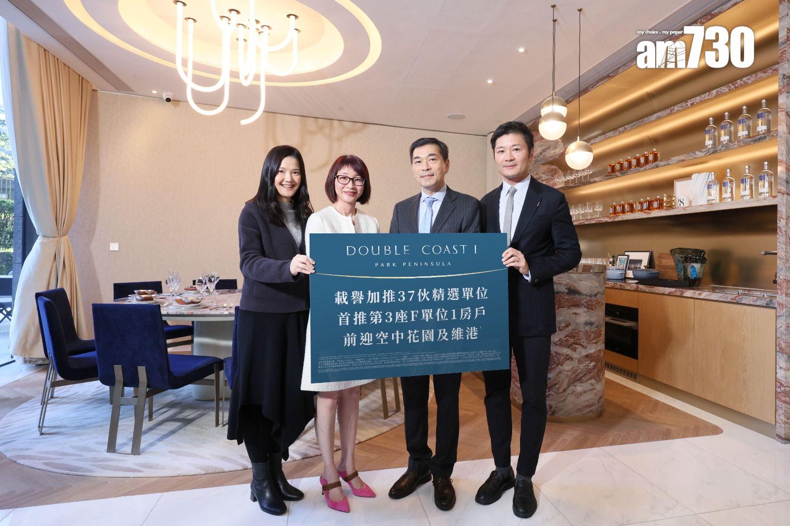黃光耀(右二)指,「DOUBLE COAST I」新價單首度推出第3座F室,前迎空中花園及維港,勢將吸引一眾專才及投資客。