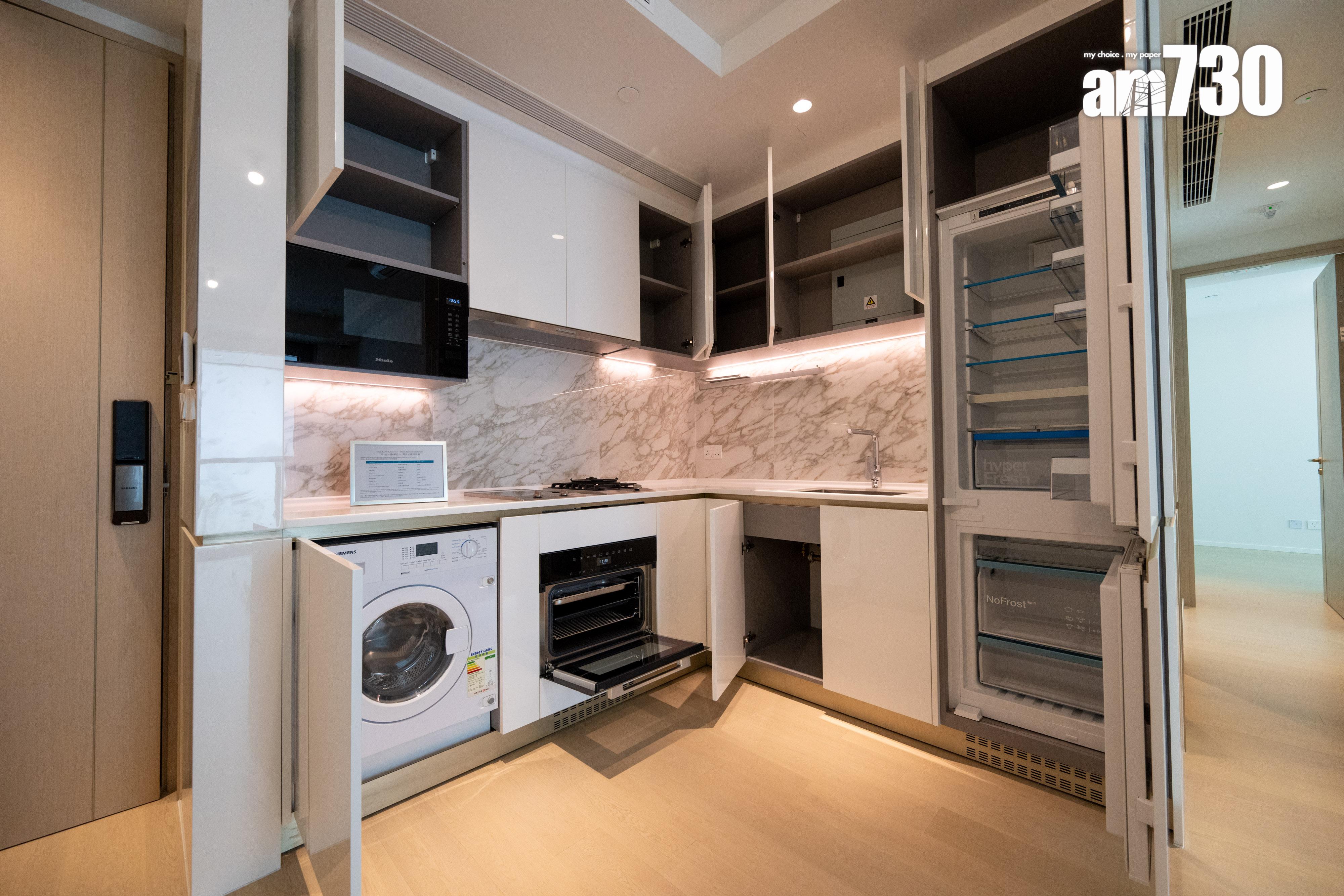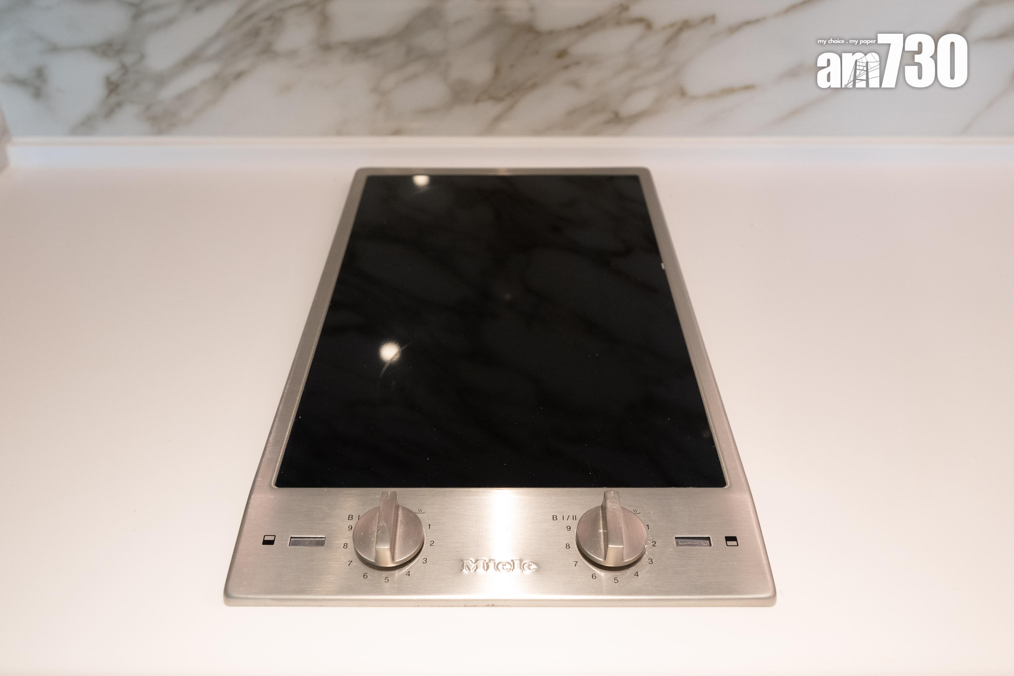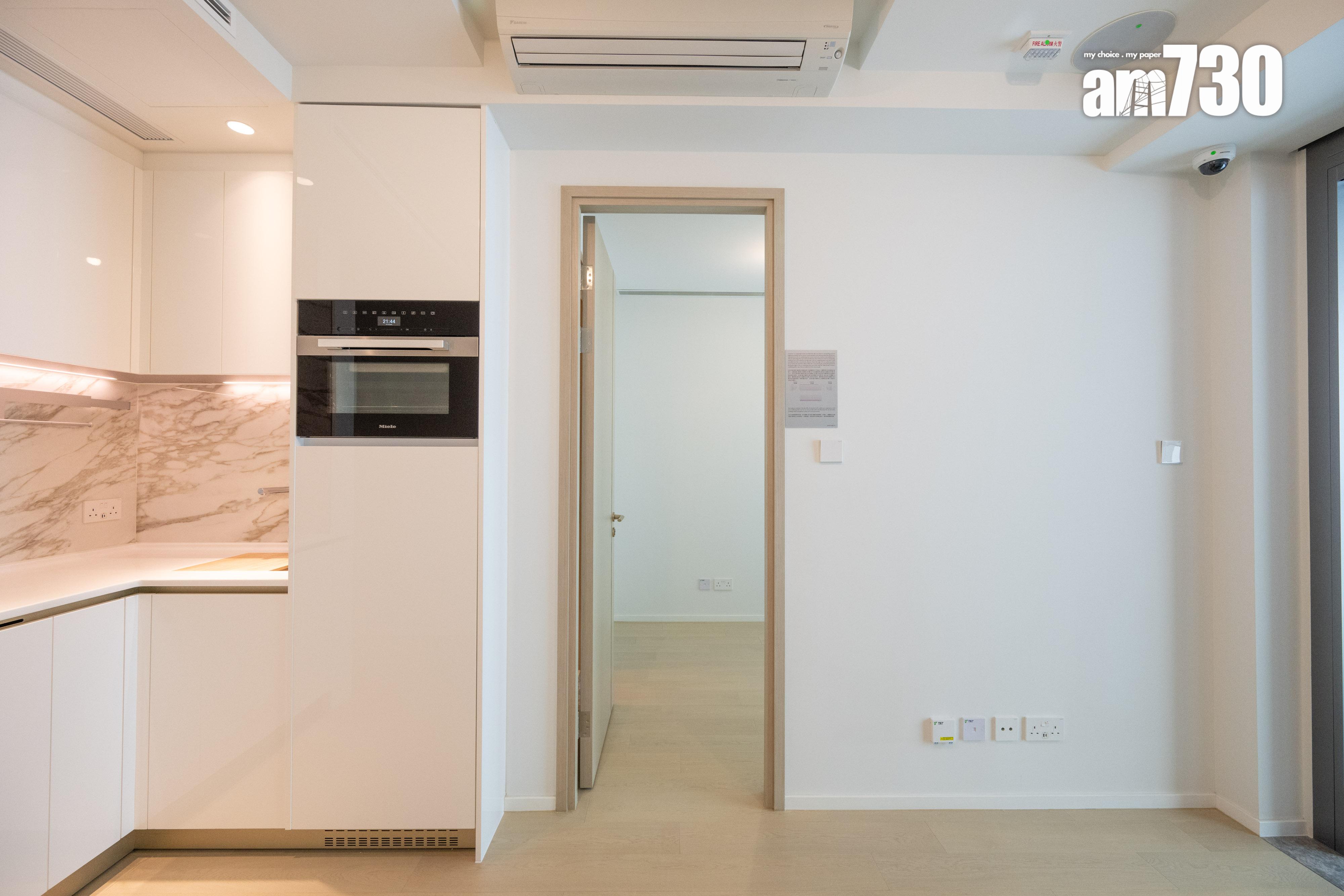 另外,開放式廚房設特長L型工作枱面,備餐空間充足,項目全數單位選用國際高級品牌Miele 煮食爐具,更升級配備Miele蒸焗爐。此單位的開放式廚房可以明火煮食,適合喜歡下廚的住戶。至於主人睡房空間偌大,放置雙人床後可三邊落床,亦貼心預留衣櫃空間,主人浴室採明廁設計,大大提升採光度及通風。