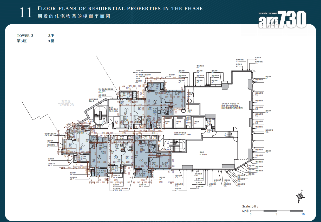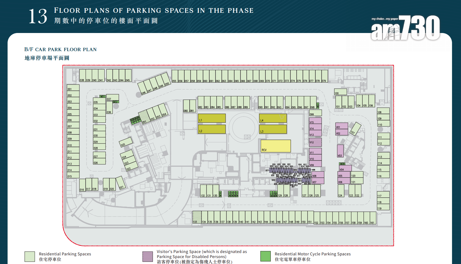 項目標準單位戶型涵蓋開放式至三房間隔,兩房實用面積由419至480方呎;一房實用面積由304至335方呎;開放式實用面積265方呎,包括第3座1至38樓G室,屬全盤最細單位;三房實用面積為627方呎。項目提供連平台或連天台特色戶,實用面積介乎267至609方呎;另設四房雙套連工作間及洗手間天際特色戶,實用面積由1,260至1,275方呎。當中東北朝向單位可外望九龍灣內海海景及海濱長廊。項目停車場位於地庫層,合共提供159個住宅停車位。