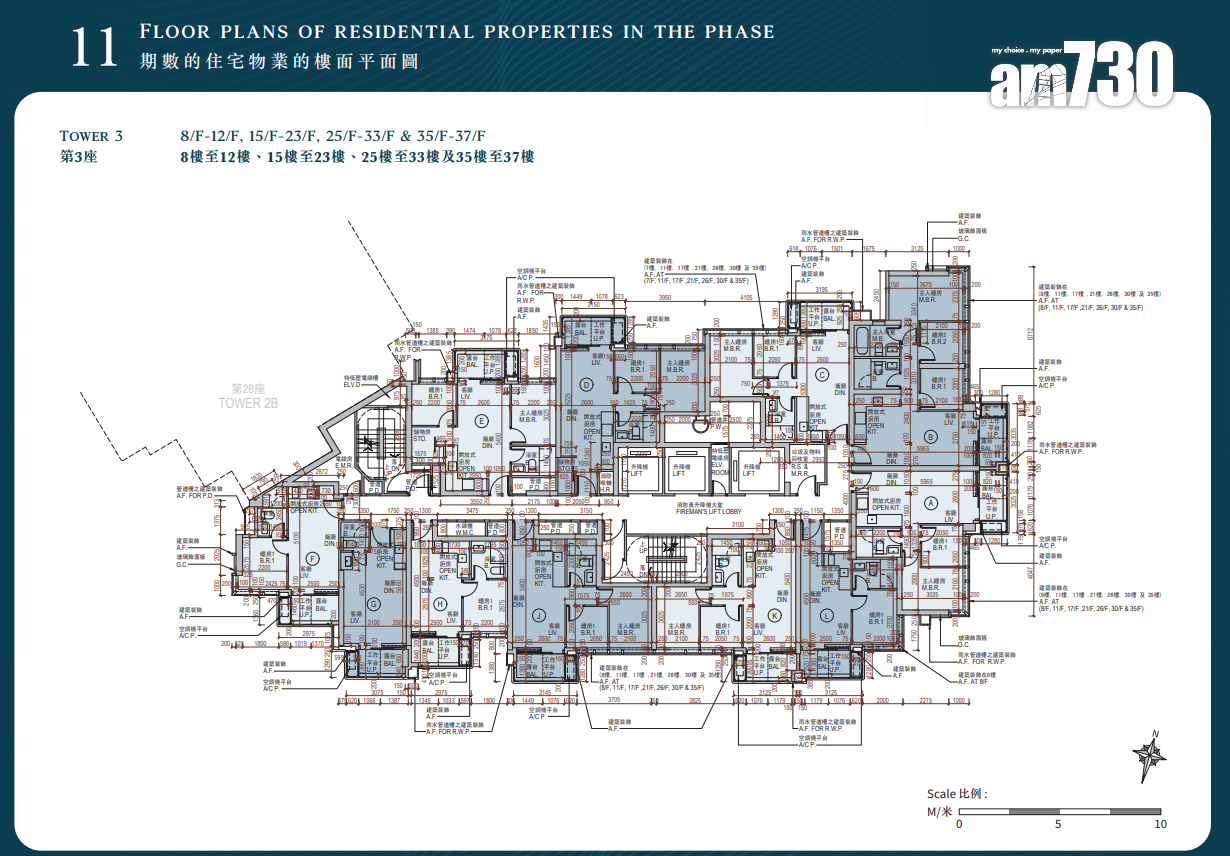 第3座28樓B室,無改動三房示範單位,實用面積627方呎,屬期數內最大標準單位,屬家庭客換樓之選。單位位於大單邊,客廳與各睡房同向,均擁九龍灣畔Inner Harbour及海濱長廊景致。客、飯廳深廣闊長,間隔分明,可輕鬆擺放傢俬,玻璃趟門連接精心打造的「全寬度」三合一露台,與客廳寬度看齊,景觀更開揚。