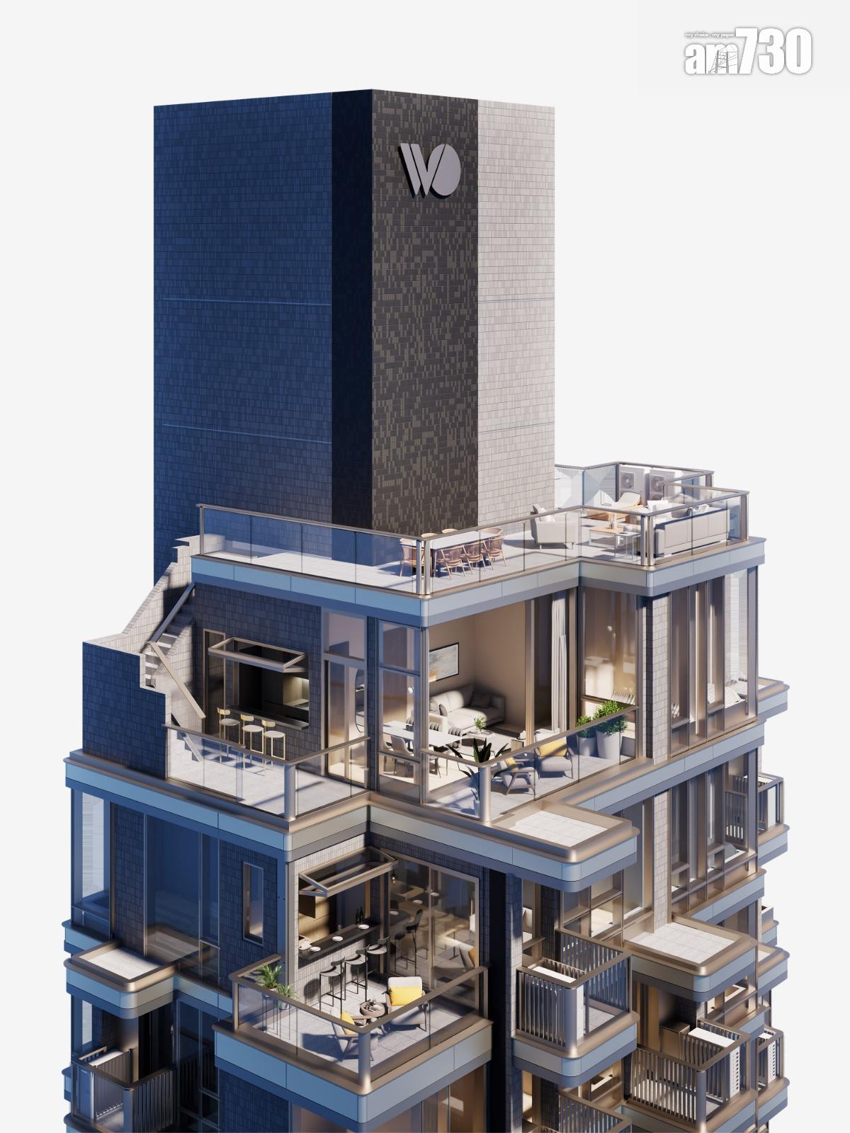 宏安地產營業及市務高級設計經理溫灌霖稱,項目一共有8伙特色單位,包括位於2樓的平台特色單位、位於27樓至28樓的高層平台特色單位,以及位於29樓的連平台及天台的特色單位。項目特別設計引人頂樓全層平台連天台特色單位「FINNIE Skies」,29A室屬三房套房設計,實用面積626方呎,天台面積505方呎,平台面積254方呎,層與層之間高度達4米,充分展現對空間立體感的極致追求;而單位私人平台更設有樓梯直達私人天台。