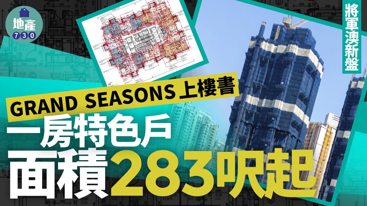 據售樓說明書顯示,「GRAND SEASONS」由1A座及1B座相連住宅大樓組成,標準單位樓層每層分別設7伙及6伙,配備6部升降機。項目不設有停車位,預計關鍵日期為2026228日。