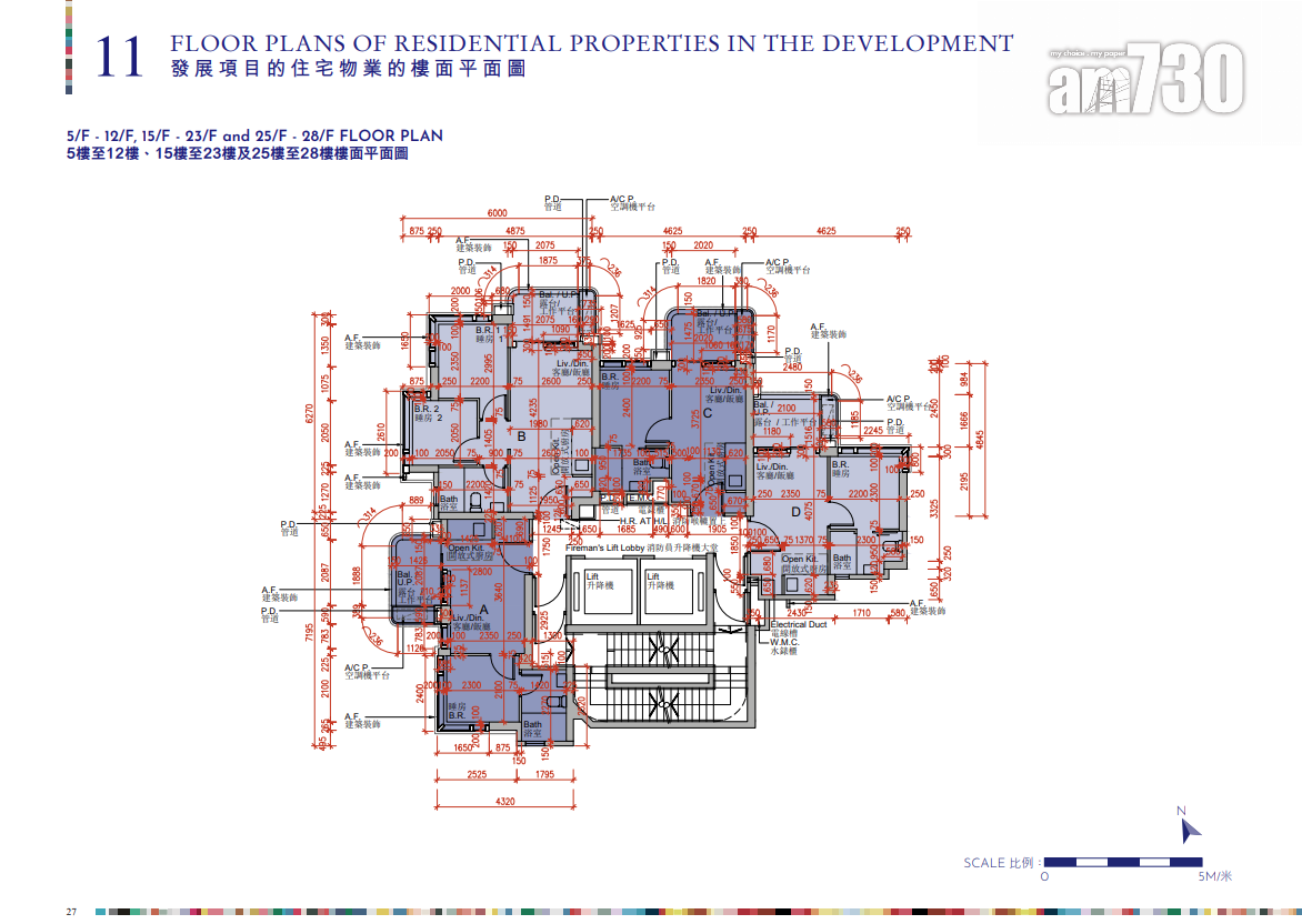 全盤面積最細為3樓C室,實用面積242方呎,連125方呎平台,屬一房間隔;面積最大為28樓B室,實用面積398方呎,連247方呎天台,屬兩房間隔。