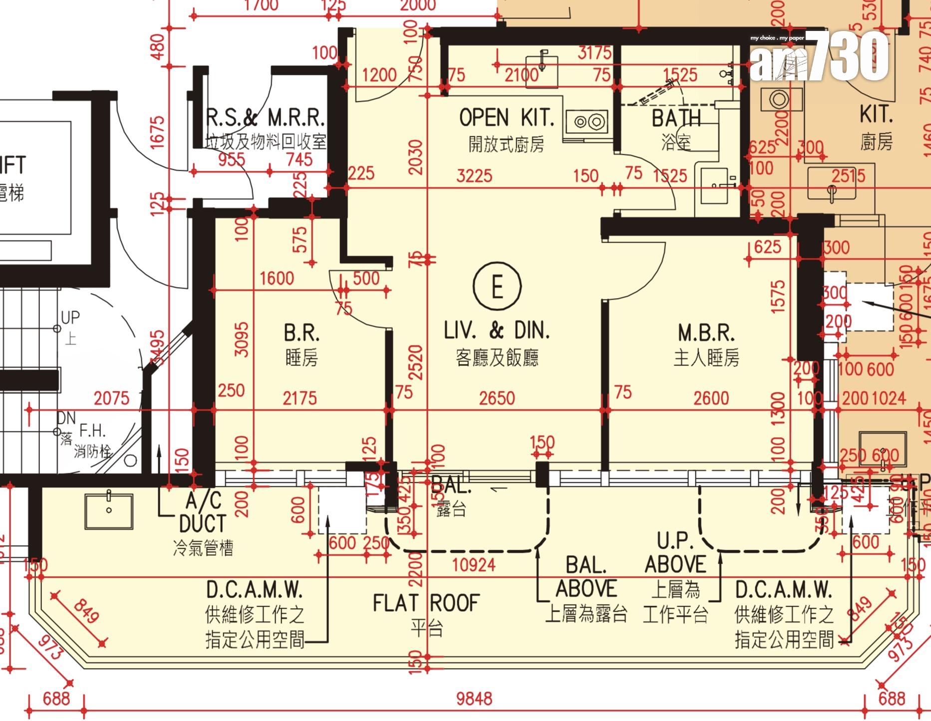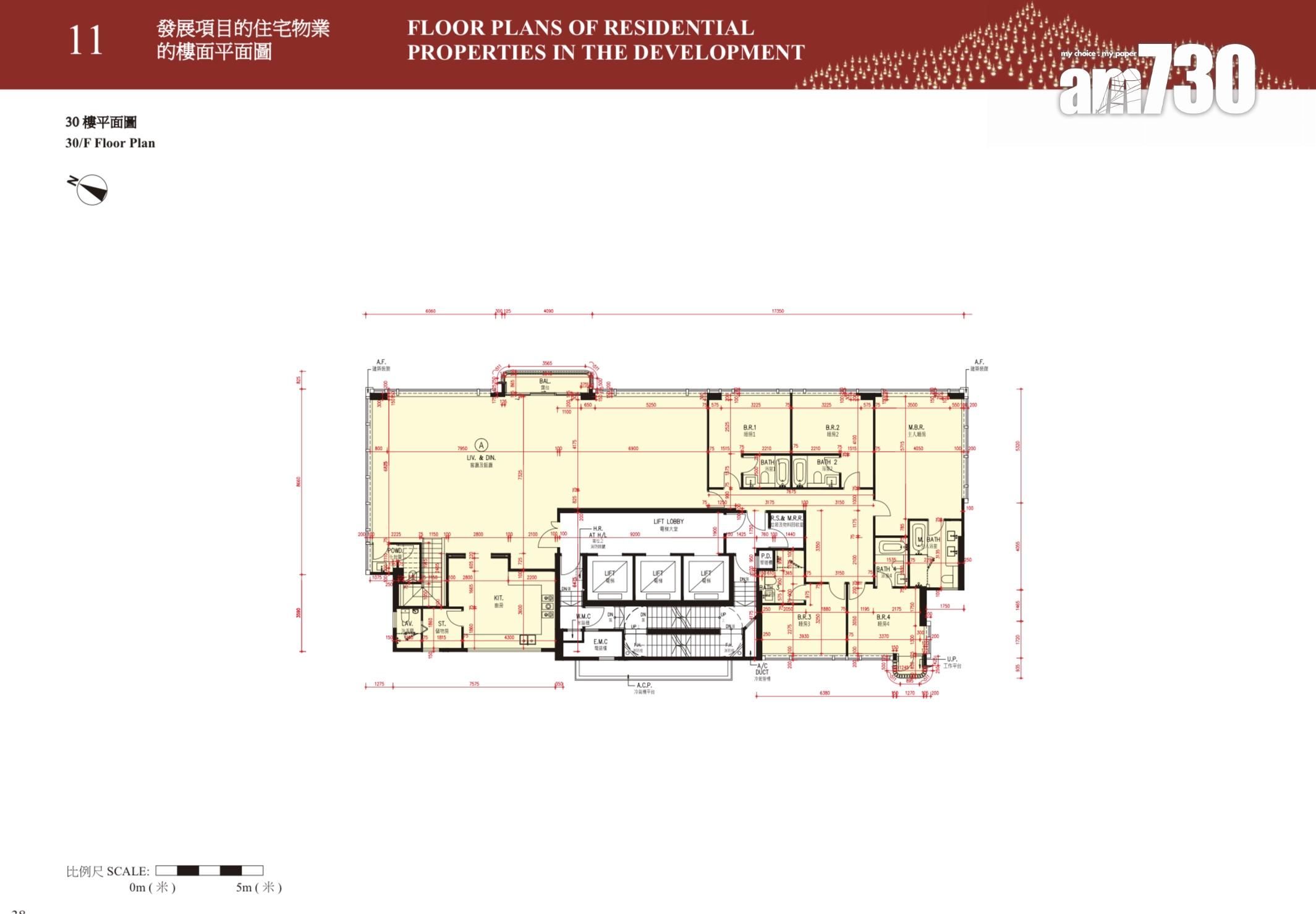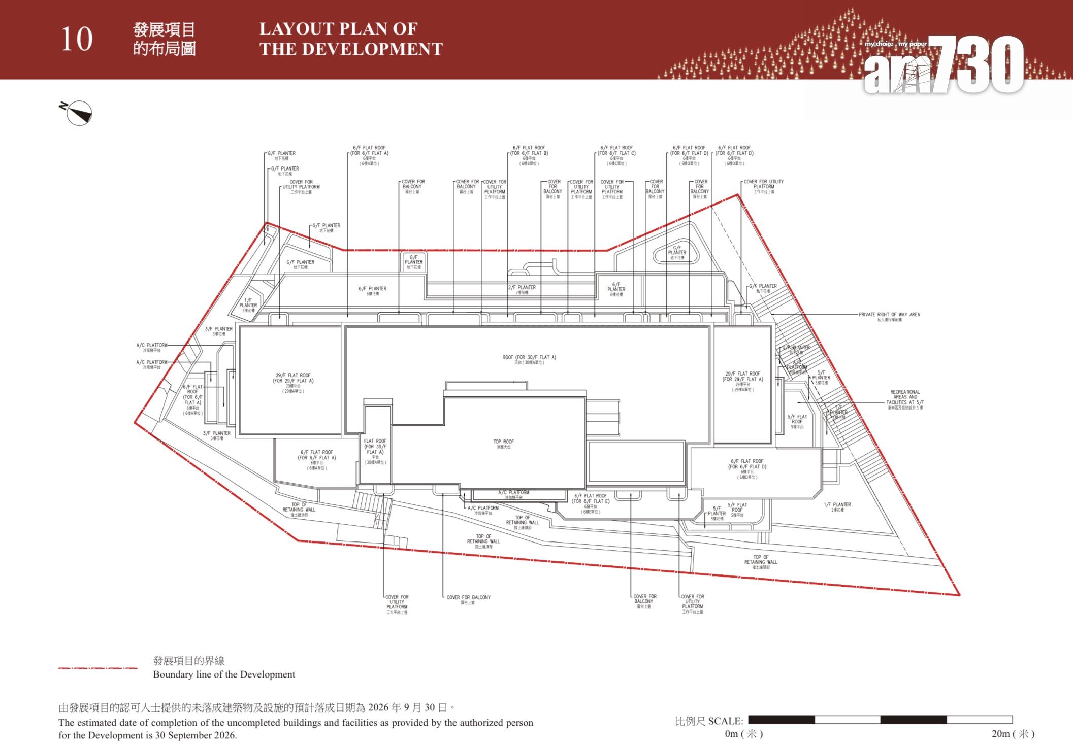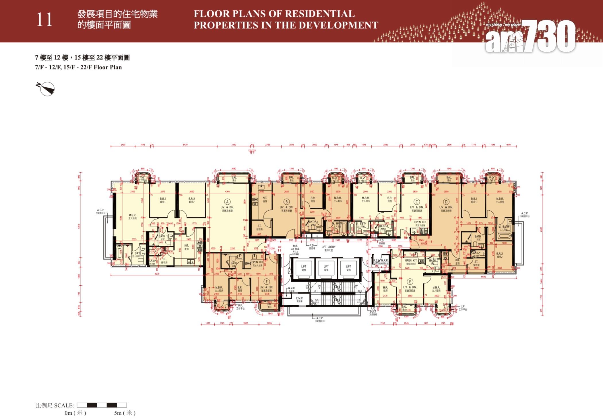 項目樓高27層,標準樓層一梯6伙,共用三部升降機。全盤面積最細單位為6樓E室,實用面積425方呎,連263方呎平台,為兩房連開放式廚房間隔;最大面積單位為30樓A室,實用面積2,990方呎,連2,308方呎天台,為五房連儲物室間隔,內置樓梯,設室外游泳池。