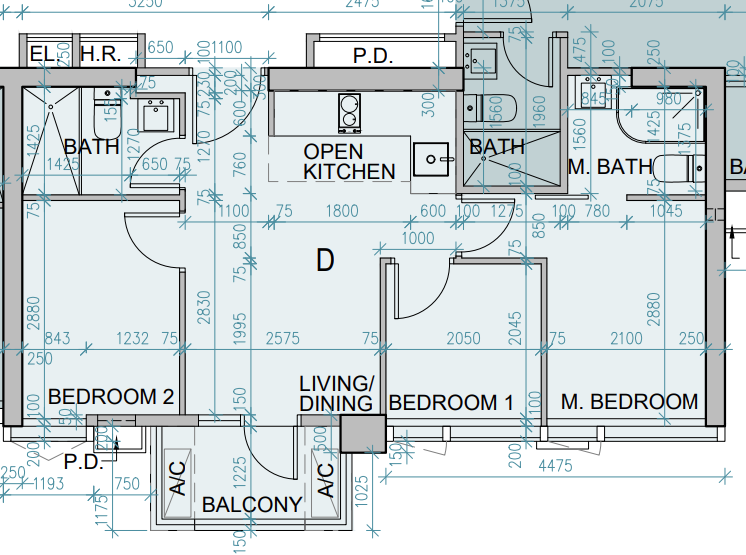 全盤面積最細的單位為5樓G室,實用面積192方呎,開放式間隔,連63方呎平台;面積最大單位為29樓D室,實用面積487方呎,屬三房一套開放式廚房間隔,連324方呎天台。屋內並不設內置樓梯通往天台,住戶需使用公用樓梯前往。