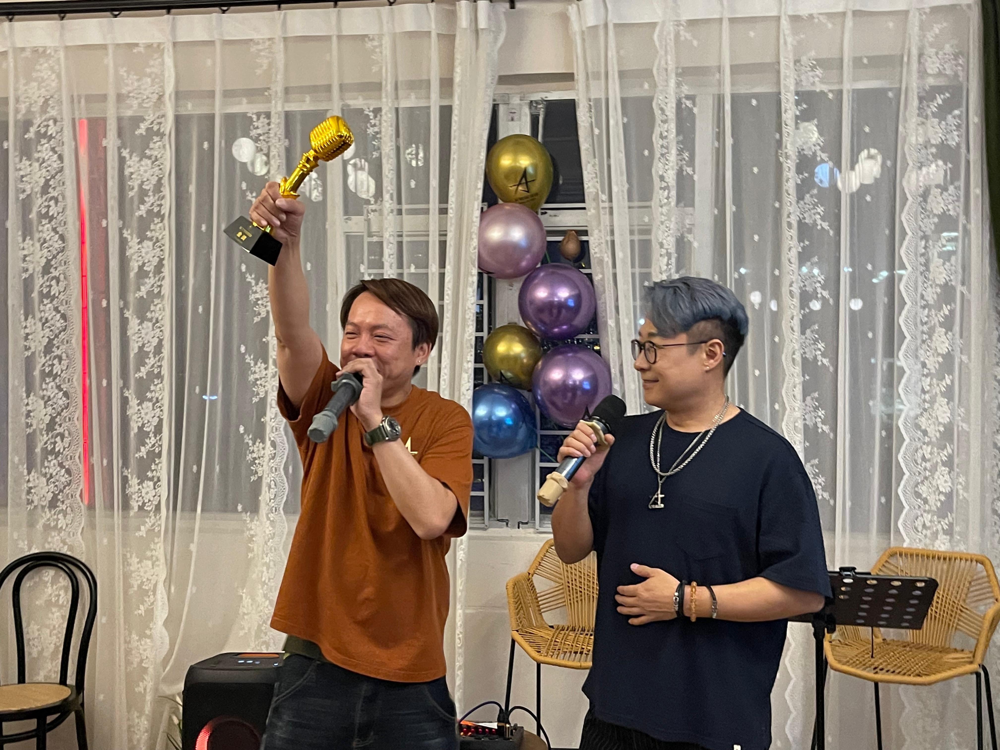 當晚重頭節目非「愛丁寶好聲音」卡拉OK大賽莫屬,多位歌迷參與角逐金咪大獎,Angus則化身「丁老師」,給他們打分並給予評語和指導。Angus指,早前他夥拍《中一》歌唱導師韋綺姍前往佛山登台,獲一班歌迷隨行打氣,為表謝意,特意於當地抽空與他們唱K,發現歌迷會隱藏不少歌王歌后。他笑言會提名今次比賽得獎歌迷參加《中三》海選,未夠年齡的則可參加《聲夢傳奇三》。