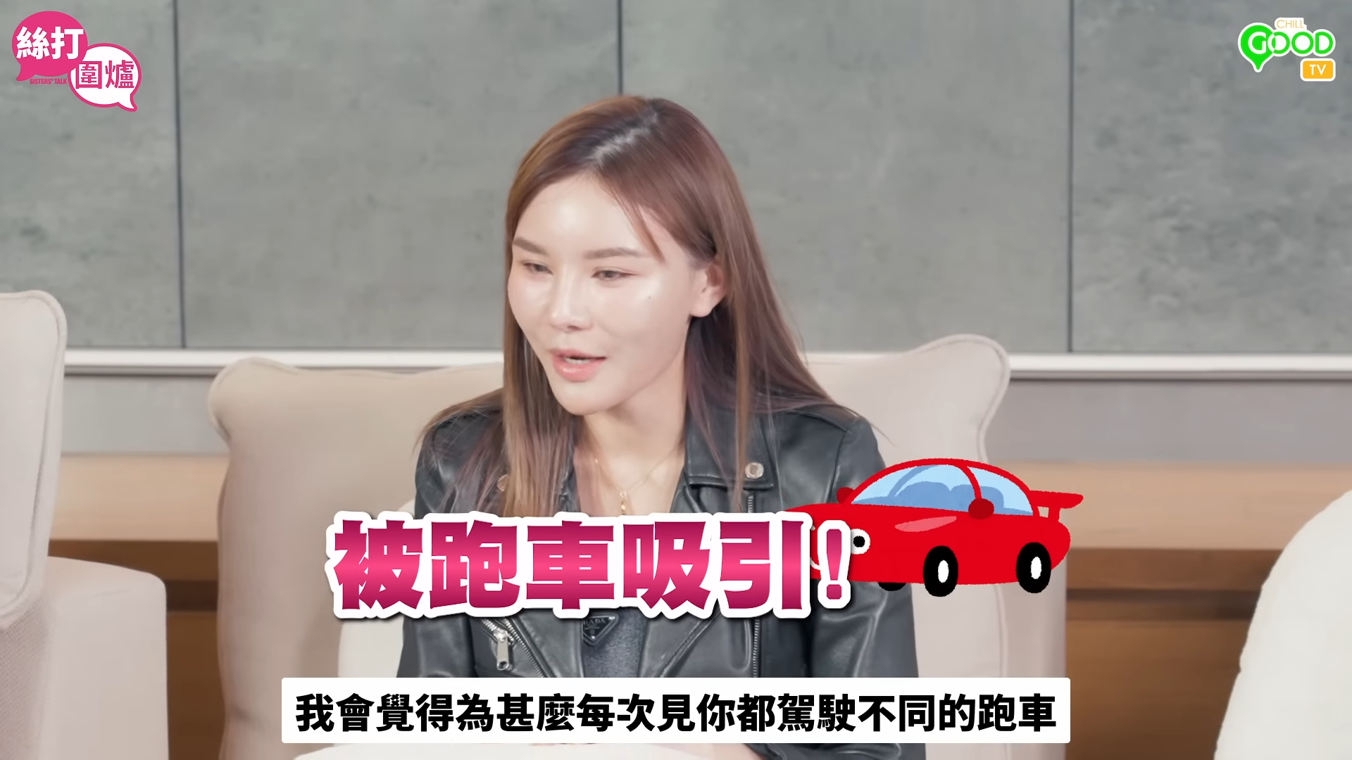 她說︰「因為佢成日揸唔同嘅跑車出嚟,我真係好鍾意跑車,佢嗰陣啲車話唔係佢自己嘅。嗰陣佢又講一個假名,我根本Google唔到佢!(估唔到佢咁有錢?)都估到嘅,我唔係咁白痴,點會啲跑車唔係你自己又成日揸出嚟。嗰時就係咁膚淺,因為成日揸唔同嘅跑車出嚟所以就好鍾意。」