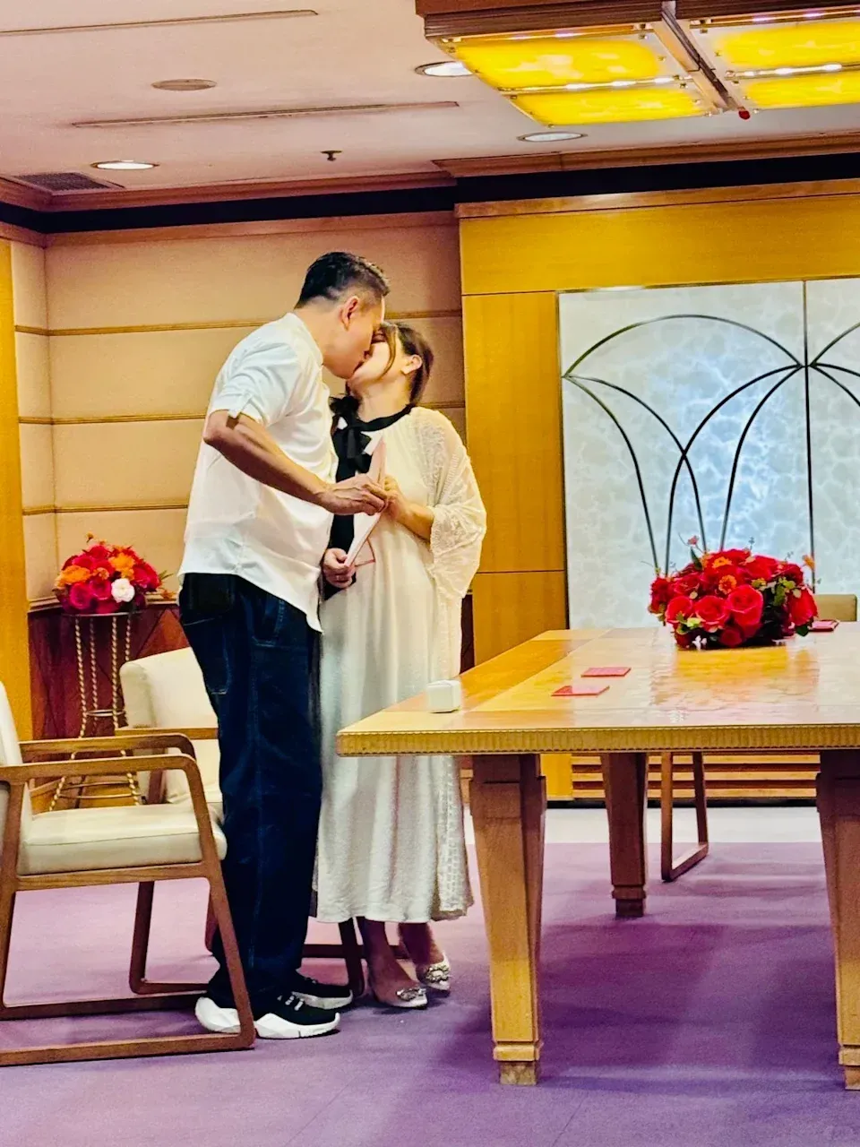 何俊軒擺酒當日穿上黑色襯衫,配以白色背心馬甲,樣貌完全不似已半百歲,而其再婚妻子年輕貌美,看來十分相襯。而何俊軒今年3月簽紙結婚時,曾在社交網站上載夫妻禮成後的接吻照,留言指「這一生中是給妳一個」。