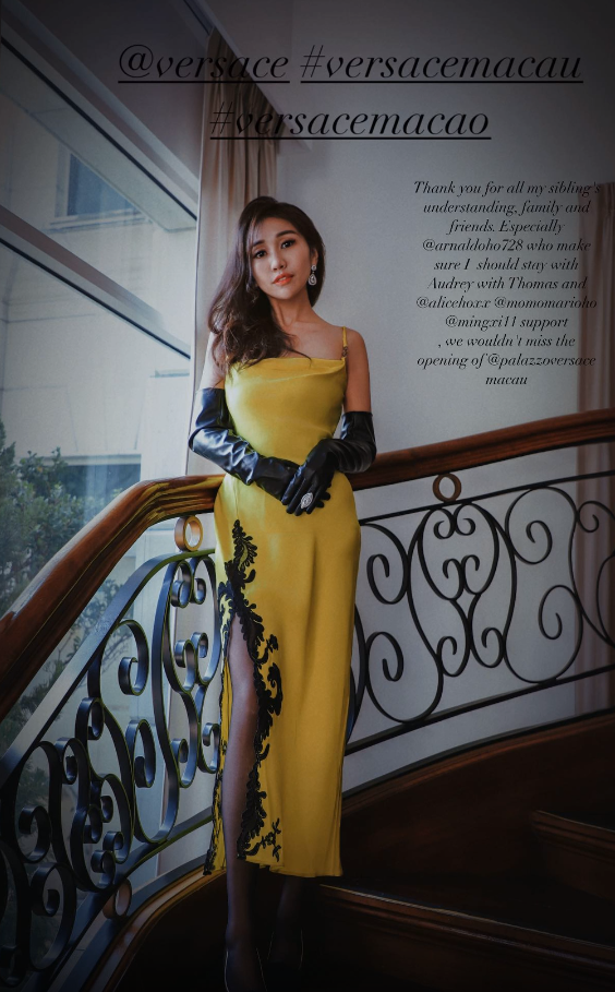 早前澳門有新酒店開幕,何家近乎總動員出席,當日大合照所見,二房代表有何超瓊、何超鳳、何鍶珩、何倩珩;三房代表有何超雲、何超蓮、何猷啟;四房有何猷亨、何猷君奚夢瑤伉儷、何超欣,就連四太梁安琪亦有出席,聲勢浩大。他們更不約而同穿上以黑色為主調的服裝登場。