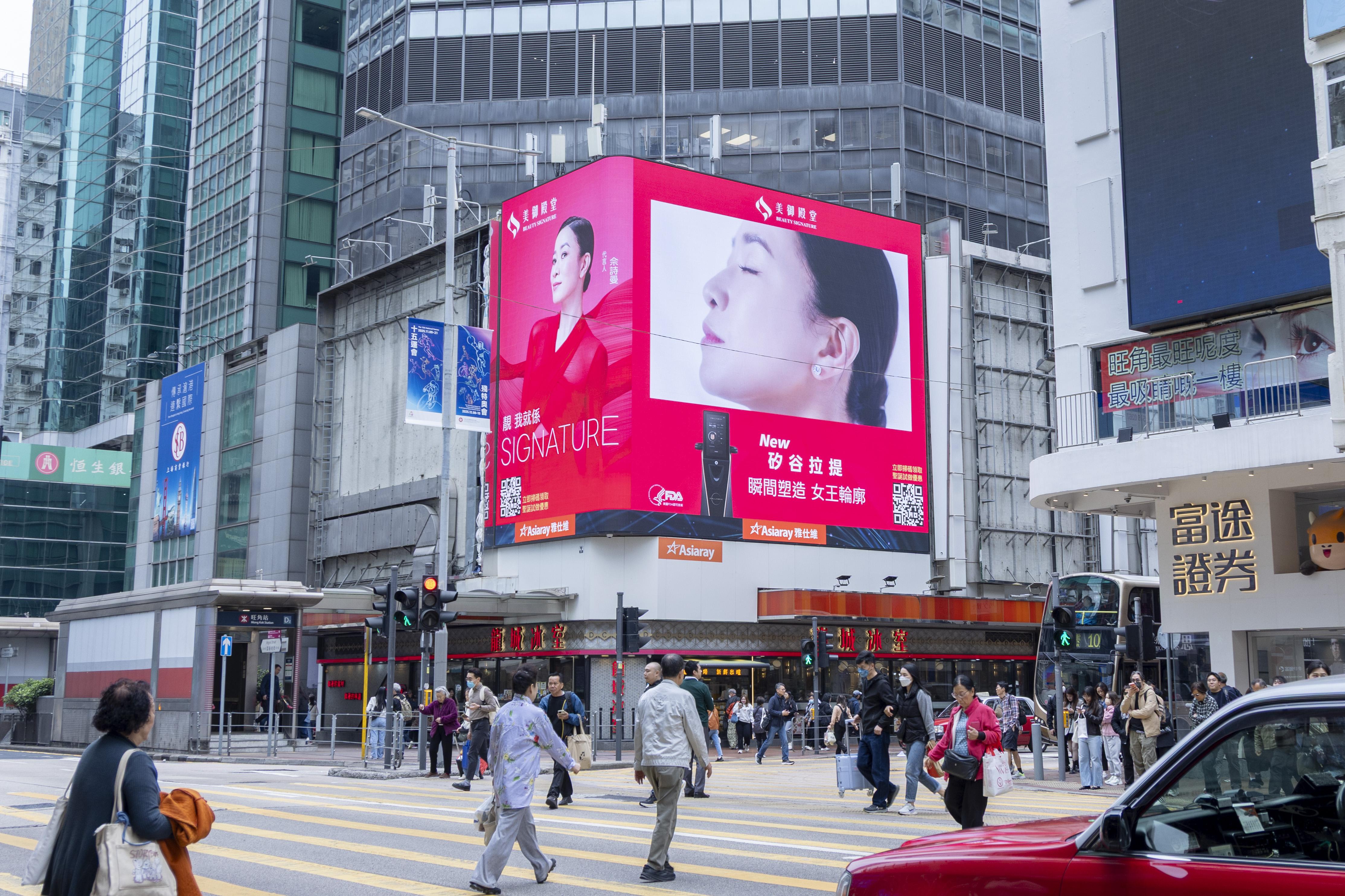 TVB台慶劇《新聞女王2》上周已播出大結局,由佘詩曼飾演的Man姐仍然是劇中最重要的話題,而阿佘代言的美容院品牌近日推出全新廣告,更以超紅色巨型LED廣告空降香港核心地區的當眼位置,繼續延續Man姐熱潮。