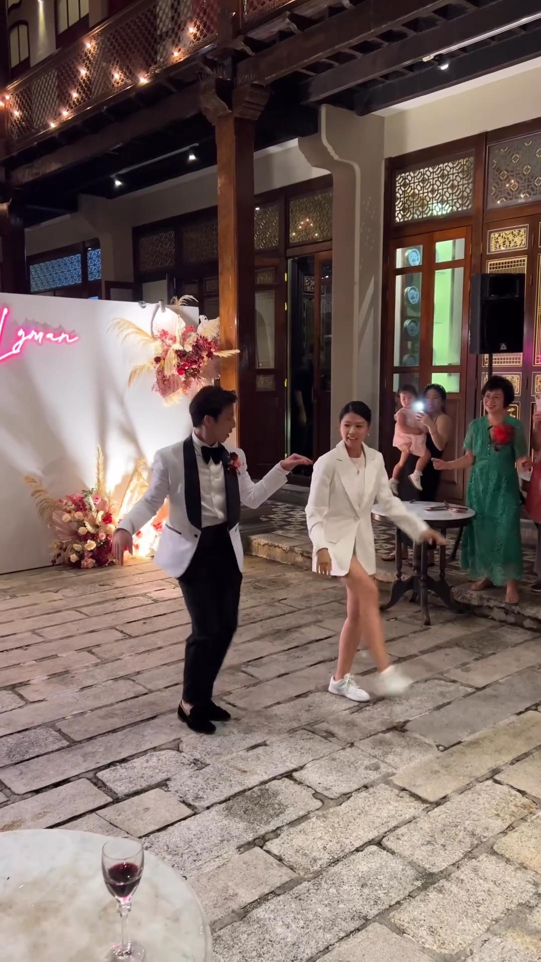 從王詠穎分享的影片及照片看到Lyman夫婦穿上中式禮服及裙褂,並見到二人在一個大型囍字前,向長輩下跪。Lyman與太太之後換上白色的西裝及婚紗與來賓拍照,會場更有live band伴奏,另一條影片見到Zoe換上白色西裝及以短褲上陣,與Lyman即席表演跳舞,在場的親友亦隨音樂扭動身體,他們的朋友亦攬在一起跳舞,非常熱鬧。