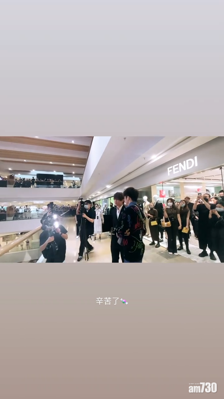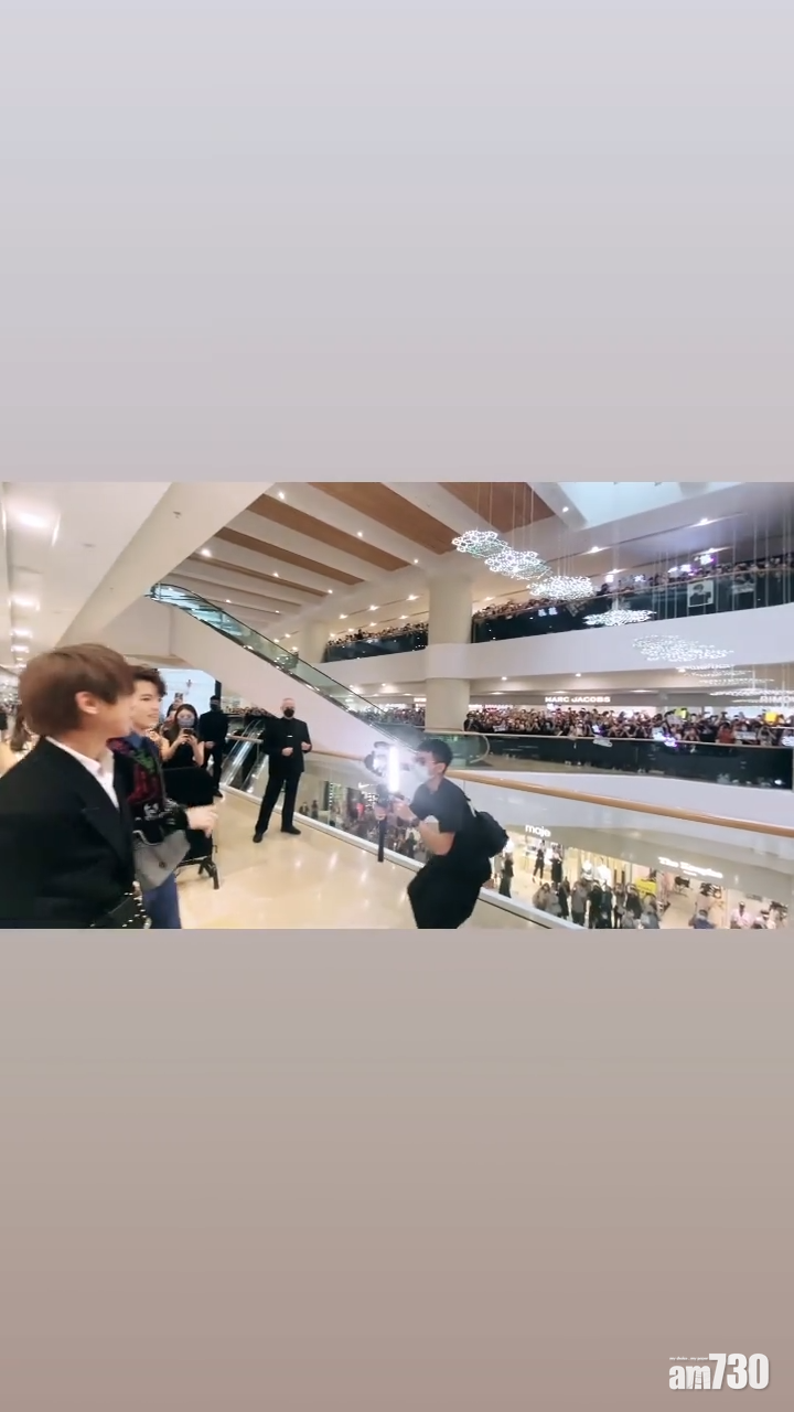 MIRROR成員姜濤與陳卓賢(Ian)到金鐘一商場出席品牌活動,吸引逾千fans到場支持,令商場逼得水泄不通。有fans稱今早5時已到場霸位,等足偶像9小時!姜濤在IG story上載片段,以他的角度拍攝現場情況,見到fans企滿兩層樓,非常誇張!他們出場時,不停向對面的鏡粉揮手,令現時尖叫聲不斷。