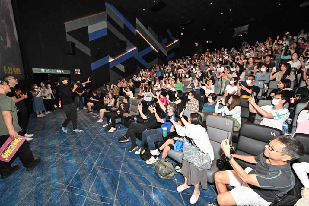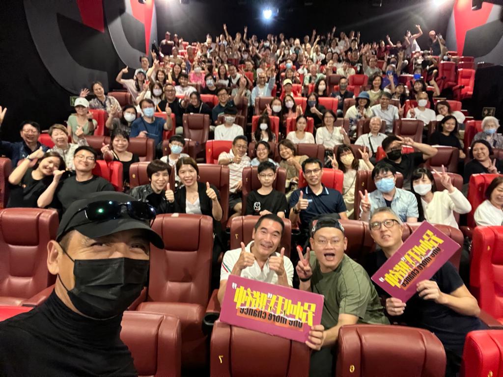 發哥謝票當然要自拍。 演兒子的柯煒林與文念中齊齊謝票。 觀眾反應應烈,大聲祝願發哥身體健康。