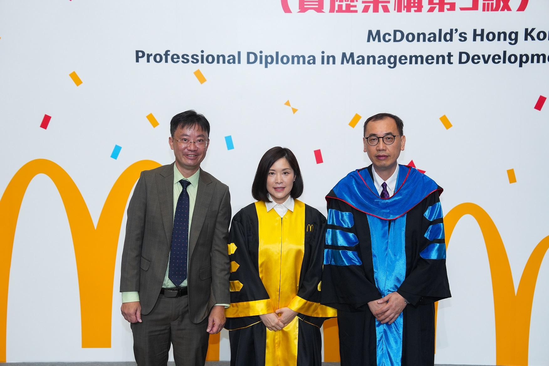 另外,麥當勞宣佈,為旗下餐廳管理組員工而開辦的《管理發展專業文憑(資歷架構第5級)》已成功獲香港政府資歷架構認可,為員工提供與學士學位同等資歷級別的培訓課程,因而特別舉辦了盛大的頒授典禮。