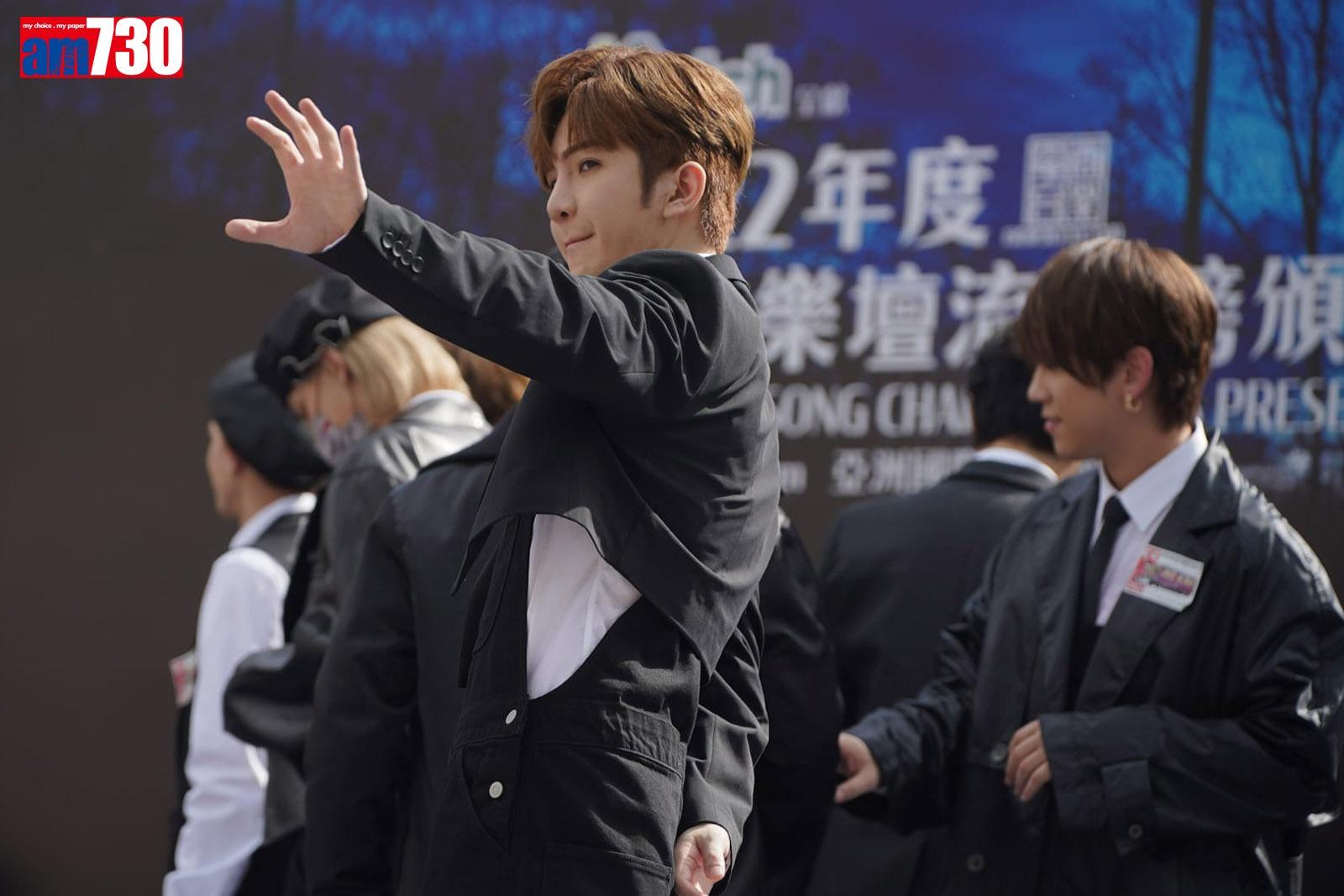 MIRROR今日有9位成員出席《2022年度叱咤樂壇流行榜頒獎典禮》記招,AK、Edan(呂爵安)及Tiger因工作未能出席。Lokman表示開心可以再次與fans見面,遺憾MIRROR今次未能齊人。提到鏡粉為見他們一面而通宵霸位,Lokman表示很擔心他們不夠水及食物,亦明白有部分小粉絲為見他們而被父母責罵,所以他們行紅地毯時,以笑容回饋粉絲。