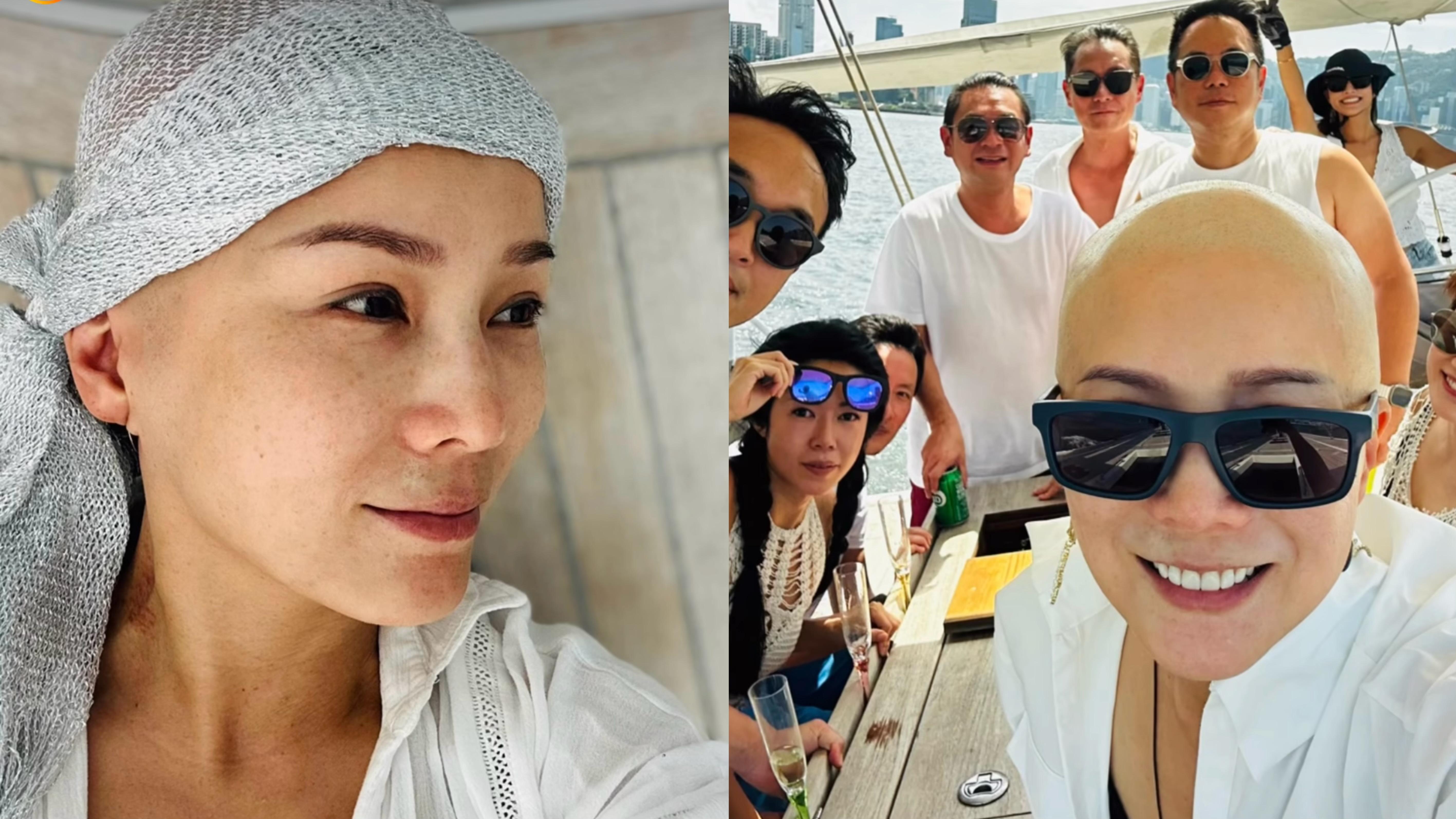 吳文忻與朋友出海享受陽光與海,笑容燦爛,精神不俗。 吳文忻叫大家對她像普通人一樣看待。 吳文忻除去頭巾,頂着光頭與朋友合照。