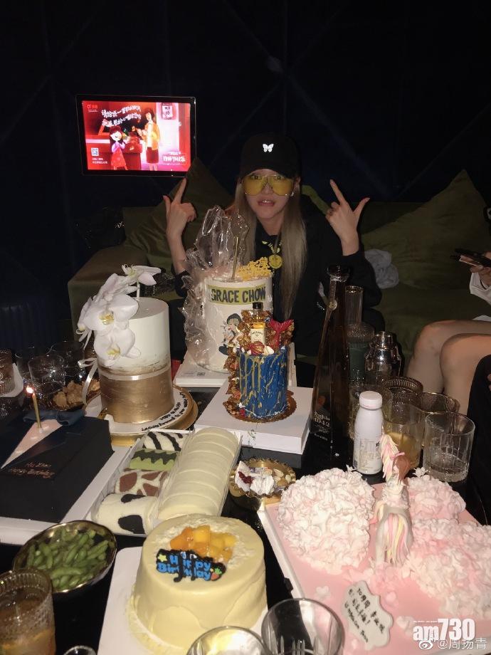 昨日是羅志祥(小豬)舊愛周揚青的32歲生日,雖然身邊沒有小豬,但仍有一珪好友輪住和她慶祝,不愁寂寞。昨日她在社交平台分享她收到的生日蛋糕和禮物,每份禮物都極有份量,令不少人大開眼界。