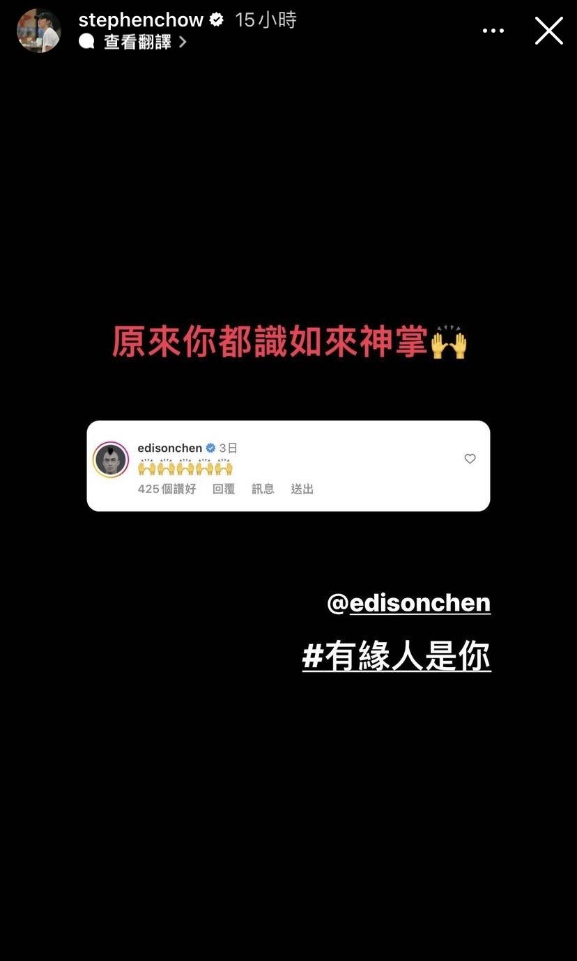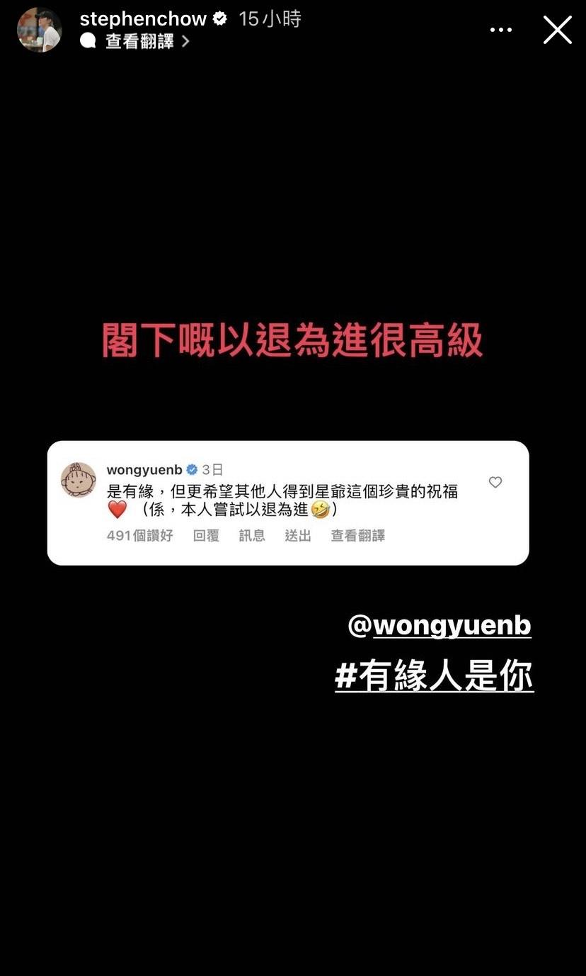 星爺在留言中抽出得獎名單,他大讚王菀之「閣下嘅以退為進很高級」,對於陳冠希留下手掌的emoji,星爺笑稱:「原來你都識如果神掌」;Collar成員Day則送上長篇的祝福語,星爺謂:「我唔信都唔得啦」;至於台灣金馬影后賈靜雯得知喜訊,亦在IG限時動態興奮表示:「天啊,這是真的嗎?我太幸運了吧!」不過值得一提的是其中一位網民,表示他的父親曾參演星爺《國產凌凌漆》中飾演湖南佬 ,星爺窩心表示以「我記得」,翻看其帳號,估計此人是已故綠葉王曾守明兒子叫曾柏僖。
