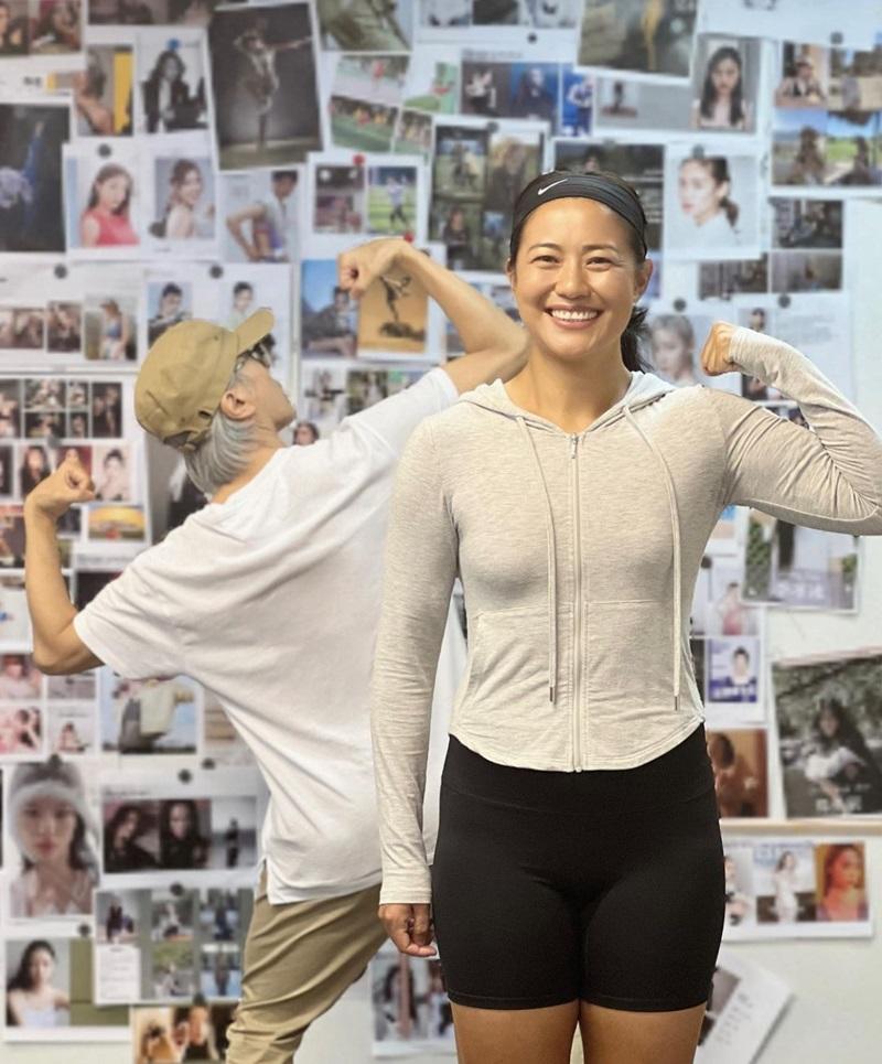 星爺扮大力士與現役女足李佳悅合照。