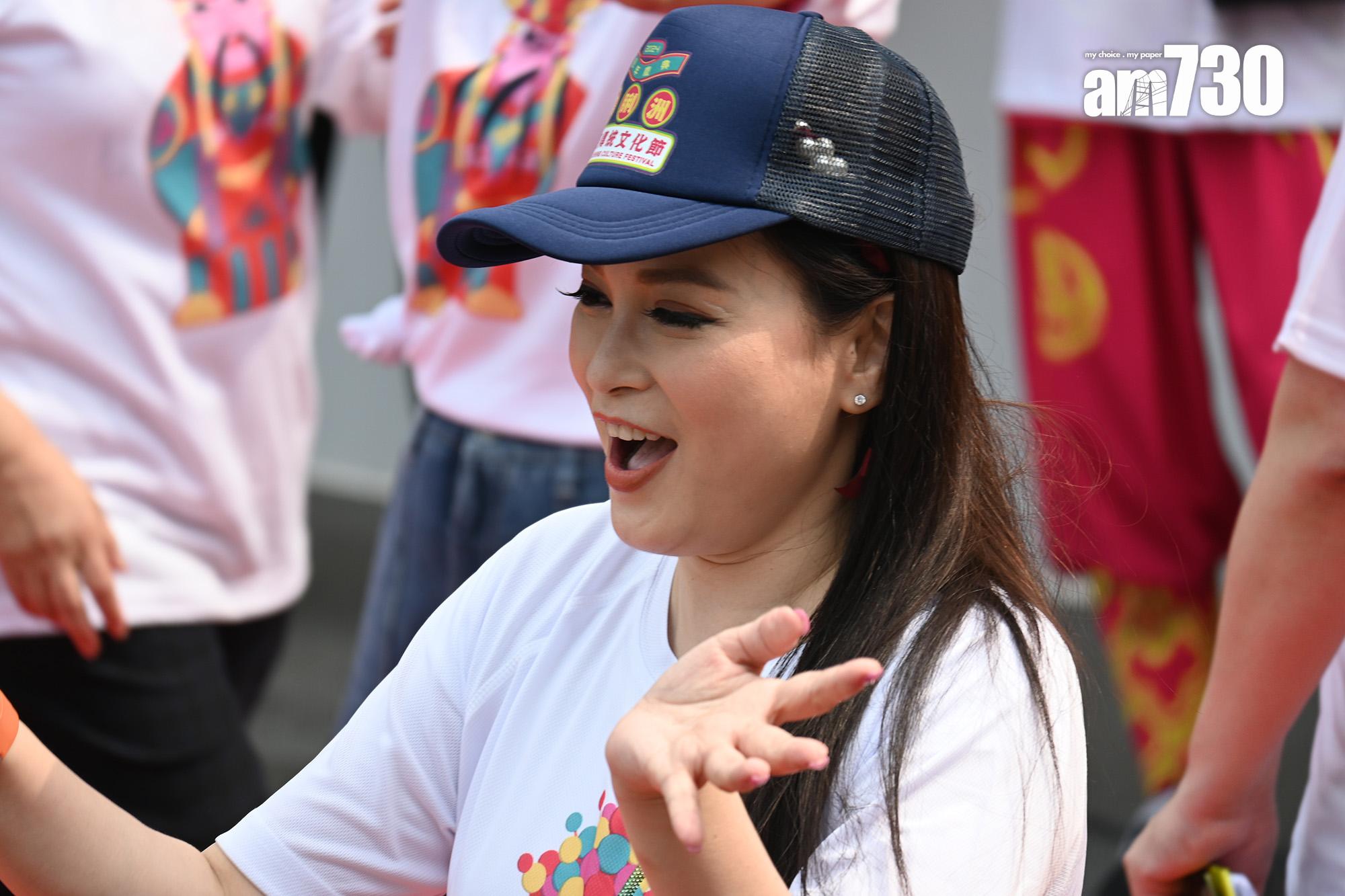 周汶錡帶同兩名混血兒子出席洪聖傳統文化節,兩子說到一口流利廣東話。