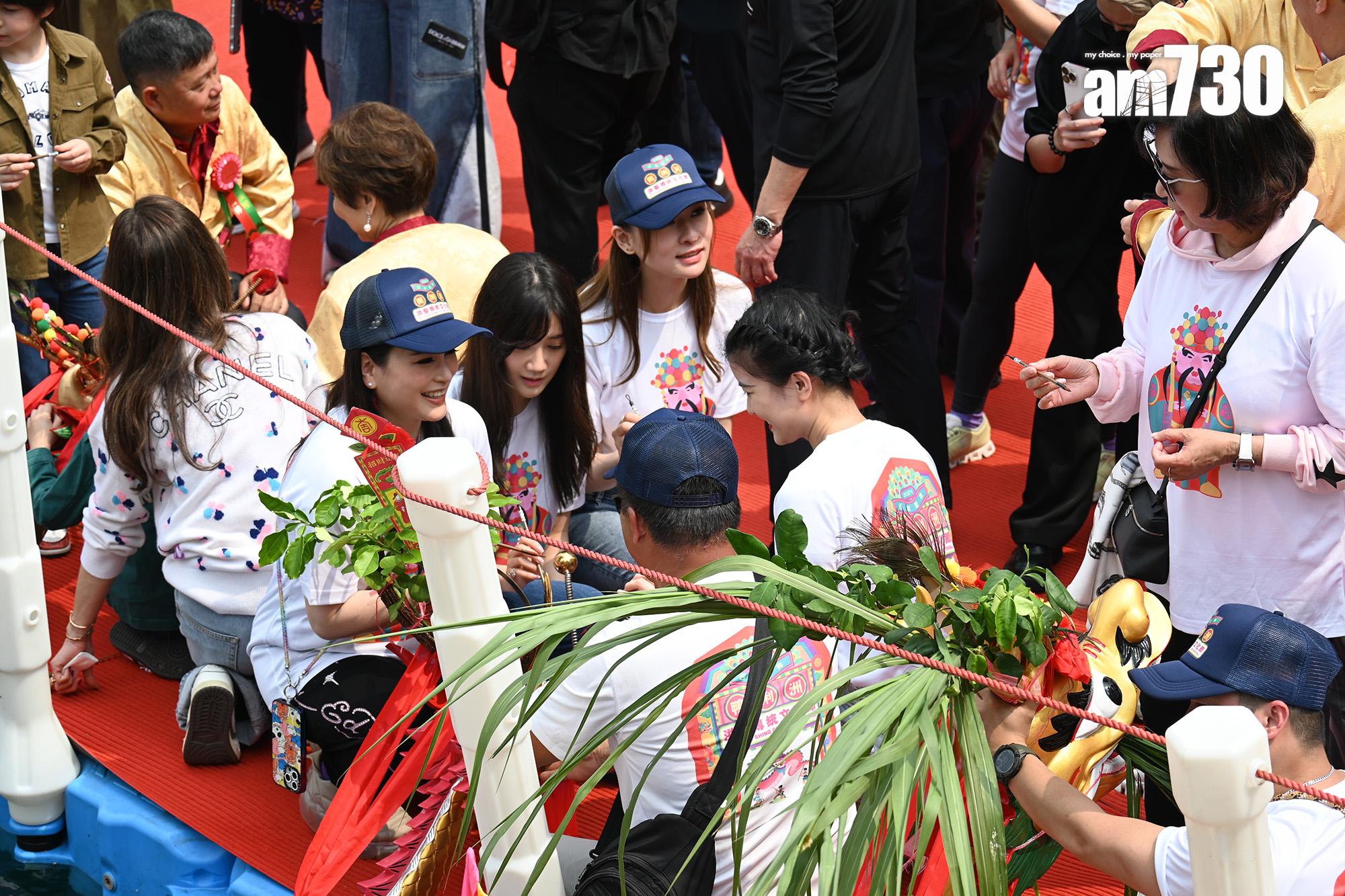 周汶錡今早(17日)帶同8歲大仔Jacques及7歲細仔Avner到鴨脷洲出席洪聖傳統文化節,同場還有琦琦、樊亦敏、七師傅、蓋鳴暉等,眾人參與放水燈祈福及龍舟點睛環節。