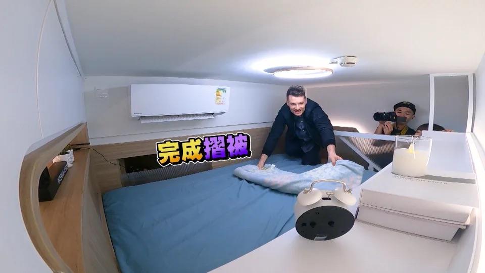 節目組要求Brendan在單位內摺被,他坦言:「我聽講香港人有個習慣係一起身就摺被,對我依個外國人嚟講依個係喺監獄先會做嘅嘢,一起身就要迫住做,所以我唔會做嘅。」他在狹小的空間裏面,以差不多蜷縮的姿態,吃力完成了任務。對比舊式唐樓和寮屋,納米樓面空間狹窄而且價格昂貴,但卻成為現今的住屋趨勢,展示了香港年輕一代的悲哀。