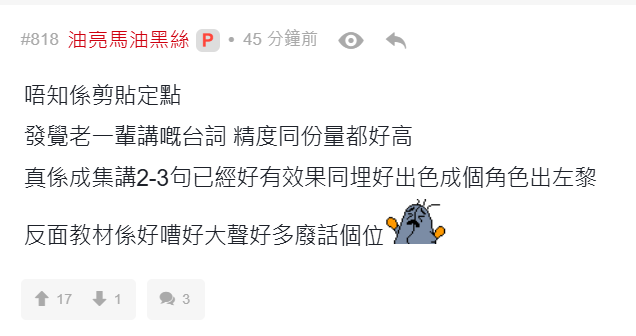 有網民發現農夫、森美及錢嘉樂的存在感非常高,就算在旁邊食花生時,也成功搶鏡。不過,C君在首輪出局,令觀眾大感可惜。