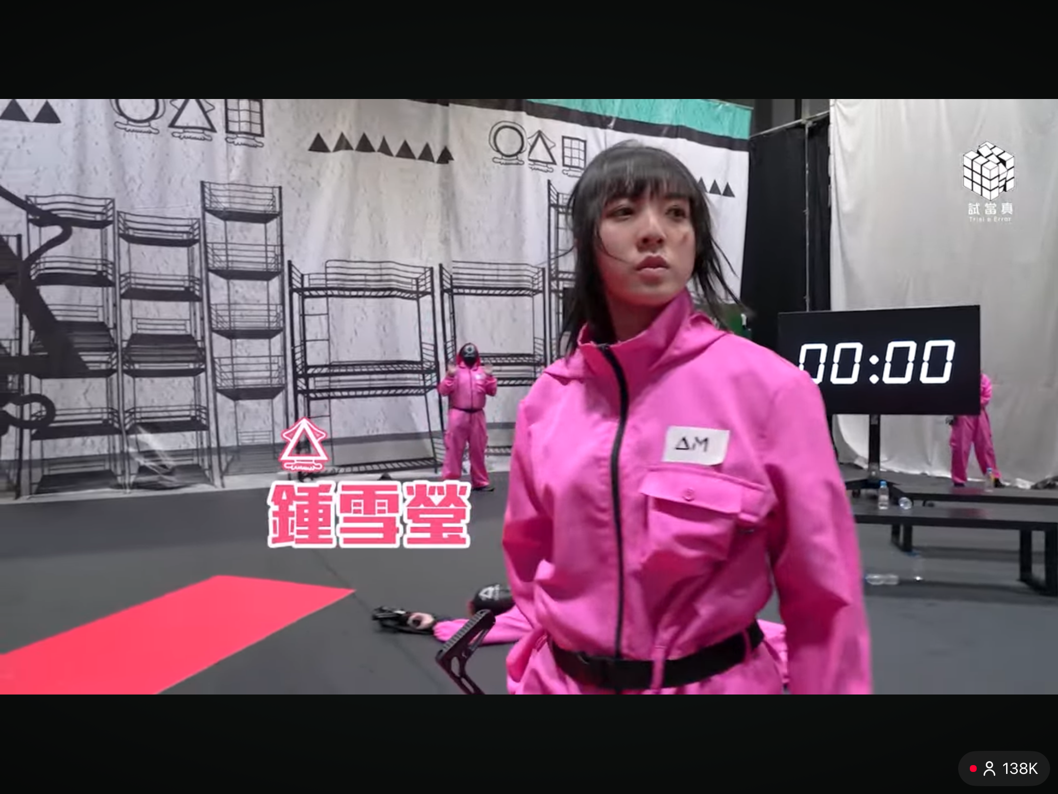 當18人進入休息區後,有一位粉紅色人闖入,並不停掃射其他紅衣人,當對方脫下面罩時竟是鍾雪瑩,令網民大為驚喜。不過,鍾雪瑩出現就成功引誘到張文傑、Stone、王智騫走出休息區,導致張文傑和王智騫出局。比較搞笑的是張文傑,表示自己未做變性手術,畫面出現Stone徒手解決他的子孫根,背景音樂播出泰文歌曲。