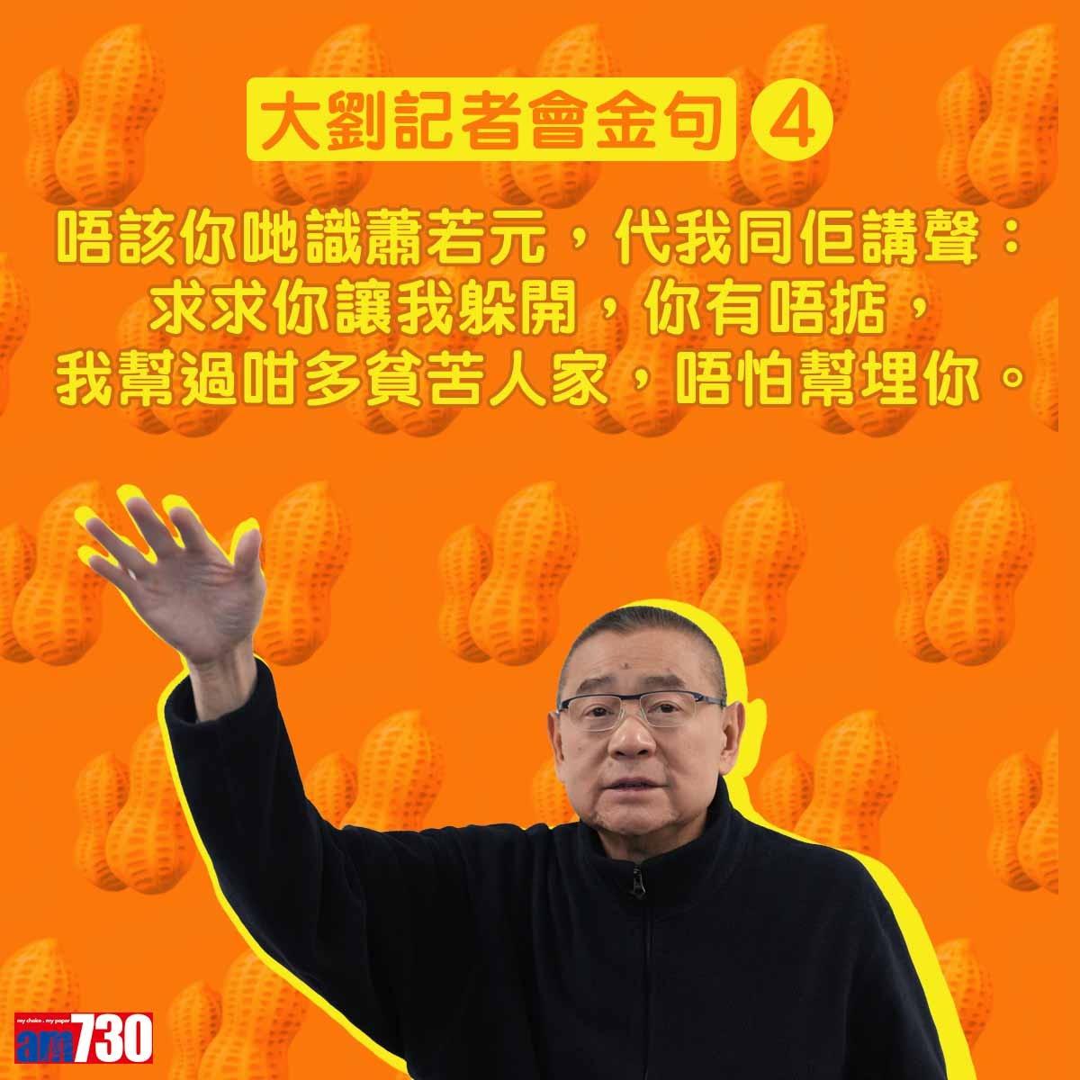 大劉先問在場記者,有沒有聽過他在福臨門塞春卷及乒乓波,他表示︰「我有諗過都絕子絕孫呀!」他稱過去有很多事沒有解釋,一直啞忍,因為只有沒完沒了的傳聞,「澄清得幾多呀?乜嘢都有人講,又話掟支票、話塞春卷呀、乒乓波、網球呀,乜都有,好多傳聞係人哋,但就傳到我去度,我又唔想累人,俾人知原來啲名人咁變態。」