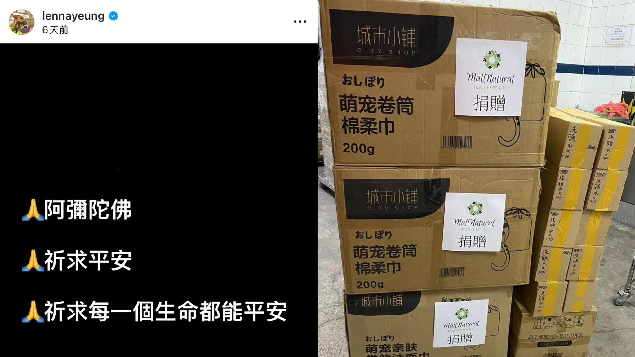 楊卓娜從事件發生的第一天起,她在社交平台表達對災民的關心及捐贈物資。