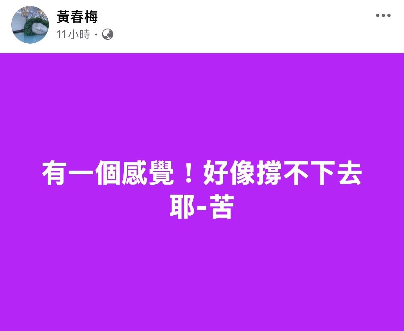 今日(10日)凌晨時分,S媽突然在社交網呼喊:「有一個感覺!好像撐不下去耶,苦」,令不少網友都非常擔心,並紛紛留言為S媽打氣,叫她要好好活下去 :「我們一起陪妳悲傷」、「徐媽媽我們陪你」、「撐住s媽!大家都支持你!」、「要好好吃飯,保重」。