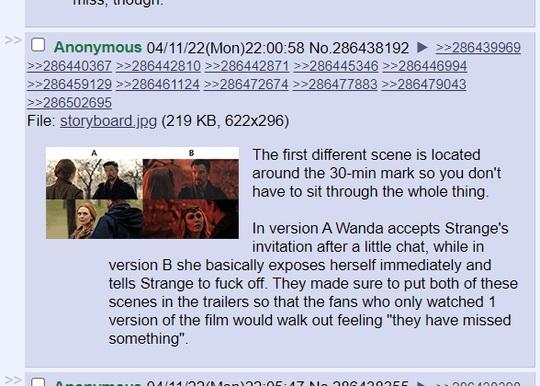 據消息指,版本是去年底有傳在洛杉磯「額外補拍」6星期的內容,兩個版本除了片長不同,劇情走向亦大有分別,直接影響 「紅女巫」和黑化版「奇異博士」是否成為終極反派。Marvel主席Kevin Feige對此安排大感興奮,認為隨機上映,正好展現「多元宇宙」的概念,吸引Marvel粉絲一睇再睇,有助提高票房,說不定為Marvel電影再創新紀錄。不過,不少網民都大感不爽,認為Marvel此舉只為提升票房,戲虐指是「美元宇宙」,並大嘆睇戲如抽獎,而且容易中伏,「睇兩次都同一個版本咪中伏?」