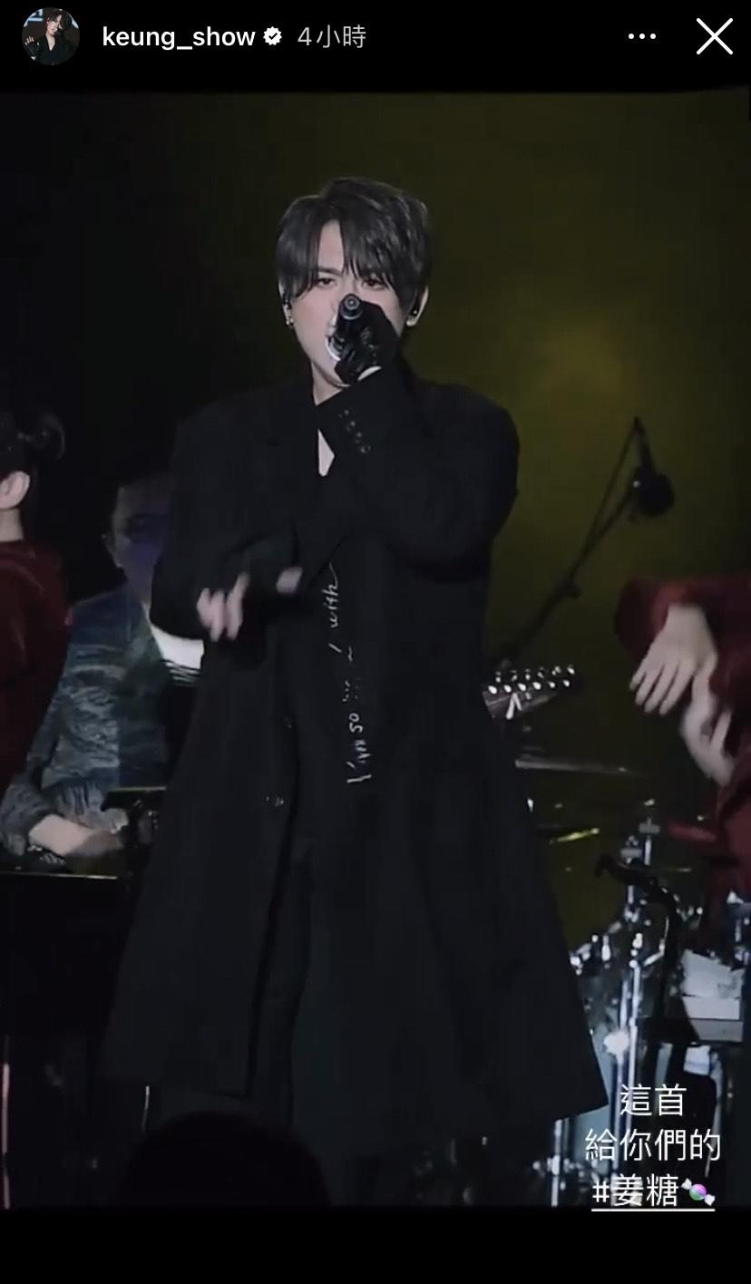 昨晚,姜濤在IG限時動態貼出當晚大唱《Dummy》的短片,寫道:「這首給你們的#姜糖(粉絲暱稱) 」,並大派福利分享了一張當晚表演的後台花絮照,相中見他舉起V字手勢,露出微笑,相當可愛,接著更轉發當晚獲大批姜糖應援的短片,並有感而發寫道:「謝謝你們還在」冧爆一眾姜糖。