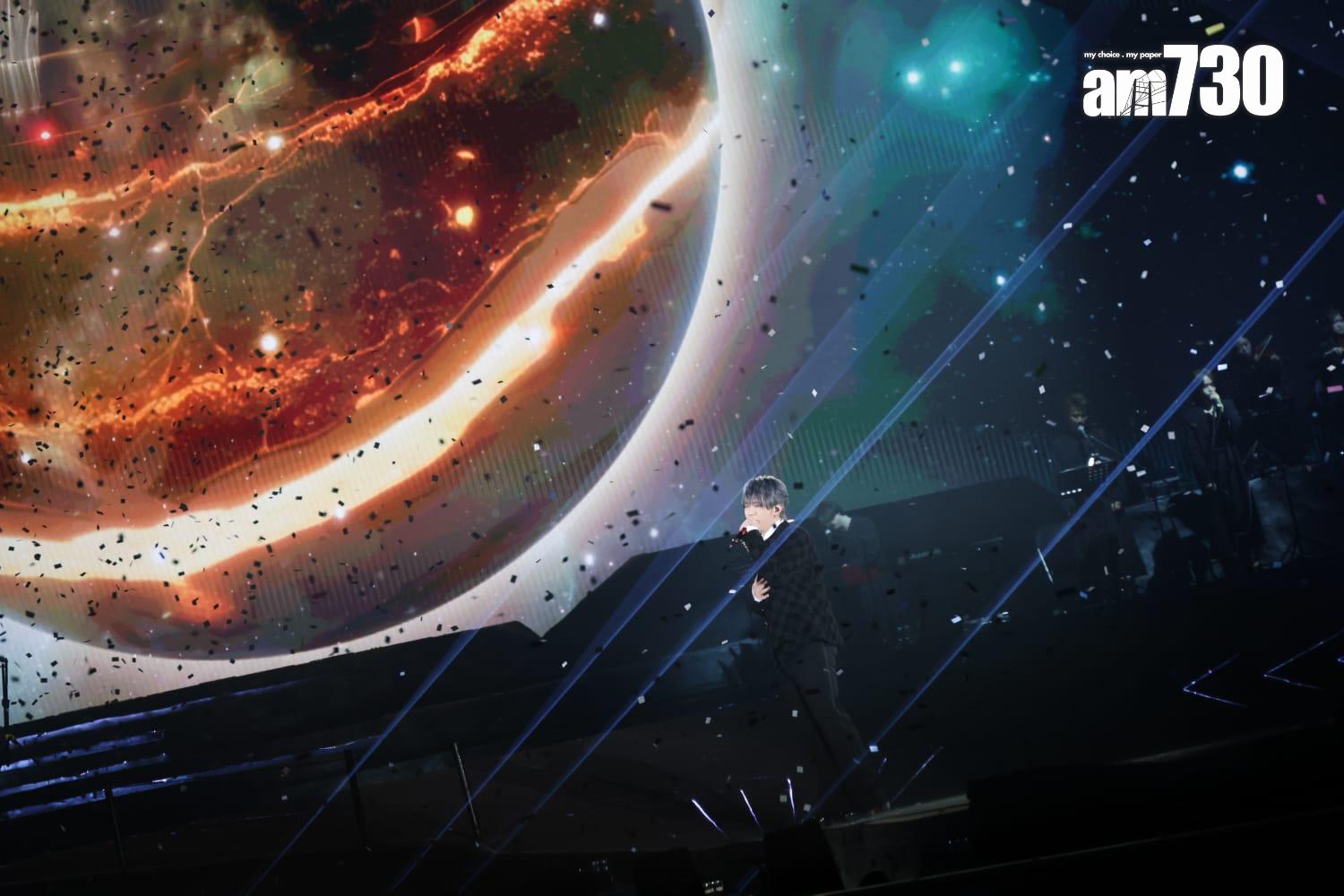 今次姜濤的舞台出動了吊臂裝置,本來在台上演唱的他踏上高台唱《亞特蘭提斯》,台板化成吊臂升至半空,裝置環繞整個舞台,令山頂位置的觀眾亦可以清楚見到姜濤,非常寵粉,他接連再唱《I Need You In My Li(f)e》和《追愛狂想》,才降落地面,加上噴出K字、濤樣和糖型紙碎,全場非常興奮。
