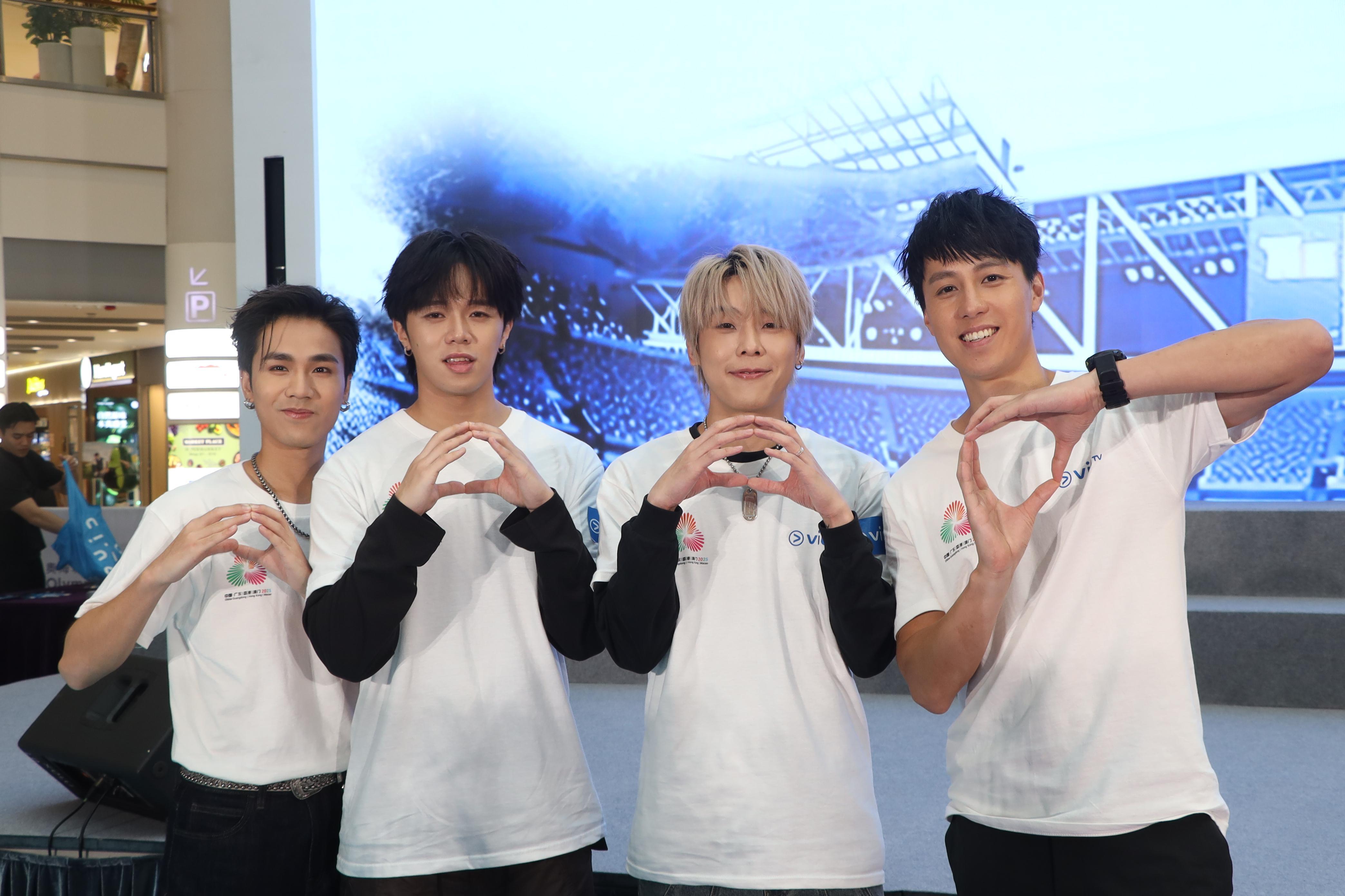 ROVER成員卓金樂(Kim)、雷濠權(Jason Loi)、王希晉昨日(21日)現身《十五運會》記者會。(娛樂組攝)