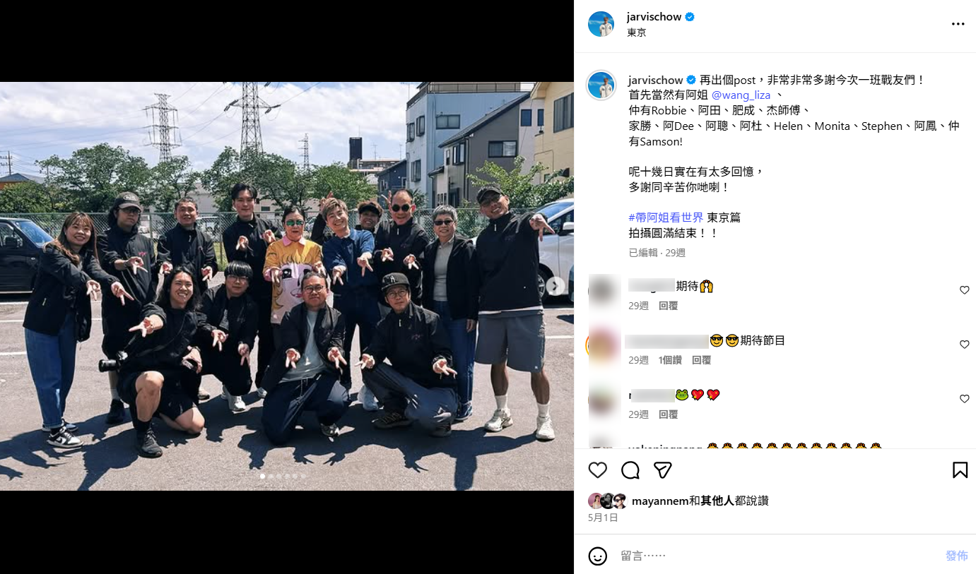 如今大家要看阿姐跟周奕瑋遊日本的場口,便要到他們的ig翻看昔日合照。早前周奕瑋分享照片,透露與周嘉洛、阮浩棕以「三大乖孫」之名去送阿姐及家英哥上飛機,更打上節目名的hashtag。隨住周奕瑋知道自己的部份被刪走後,他亦修改了當日的帖文,移除了相關的hashtag,隻字不提節目。