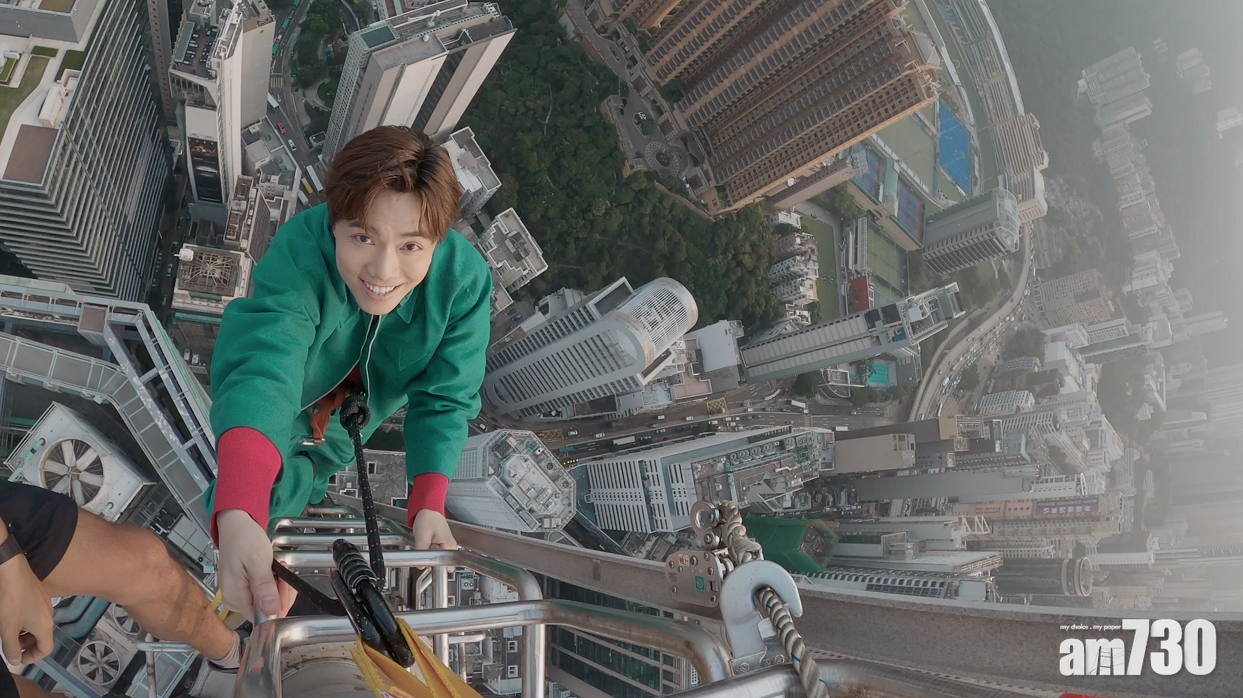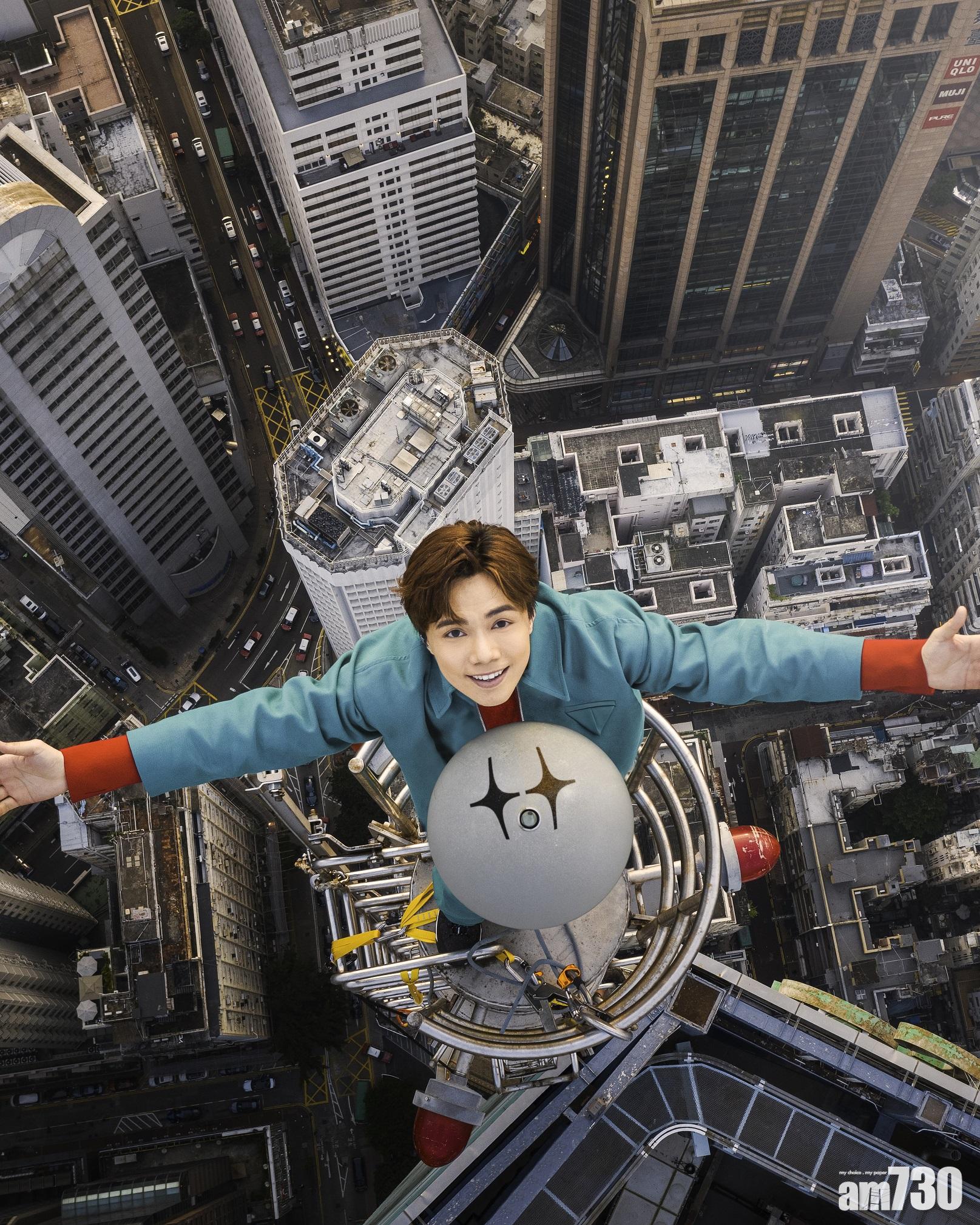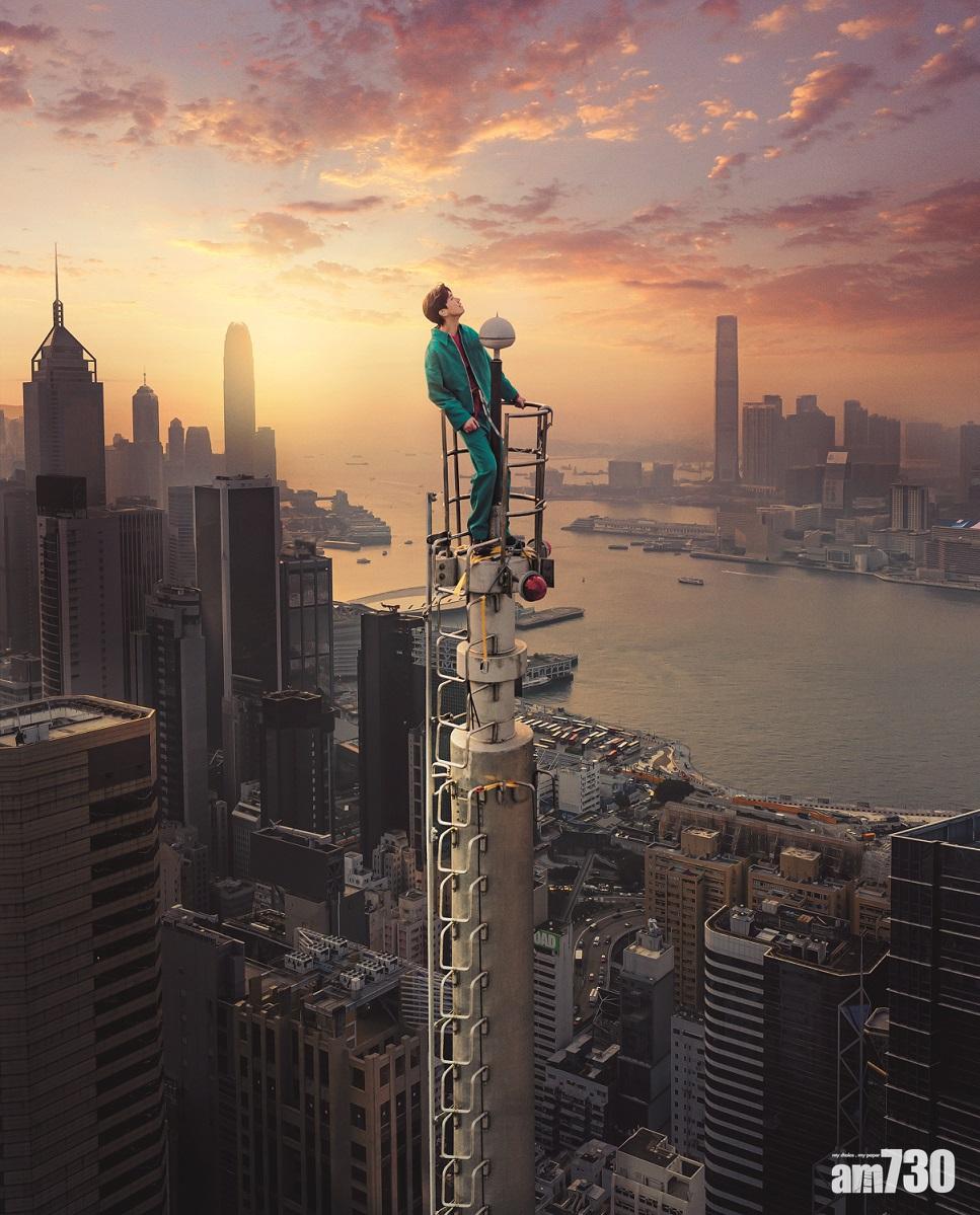 來到真正拍攝當天,軒仔笑言人生從沒出過這麼多手汗,當日深呼吸後一舉手話「行得」,他就知道沒回頭路,一路爬一路腎上腺標升,大腦一遍空白,但心裡又湧現莫名的震撼,像找回自己20年前決定來港勇闖的初心,「20年前決定離開家鄉來港發展,就立定決心努力向前,沒回頭之路;今天攀上避雷針的自己同樣也是這樣告訴自己,要刻服對未知前景的種種憂慮,一步一步向前行......人生又何嘗唔係咁樣?當下我只有咩都唔好去諗,不停同自己講,你得,你一定得,好快就到!」終於攀上針頂,軒仔直言並非馬上感喜悅,他說,「要稍作休息、順咗條氣,慢慢習慣嗰個高度,先敢大膽放眼望出去,放眼四望之後,我覺得真係奢侈到不得了,因為無人可以同我瓜分呢個moment, 得我一個可享受到嗰種奇妙同快樂。當時正好係日落magic hour, 有少少煙霞,重有鷹係我身邊飛過,好似對我虎視眈眈咁,成個城市好安靜,只剩番少少汽車聲、風聲、感覺好奇妙好神奇好靚好難形容,呢個體驗真係最強Staycation!」