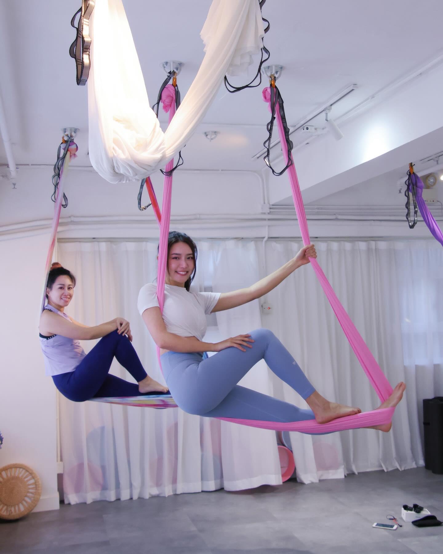 戴祖儀昨日(10日)應電台節目《開心大派對》主持思敏邀請,分享玩空中瑜伽心得,同時亦為新城廣播網絡電視MBO TV錄影節目。本身是瑜伽導師的思敏,即場指導祖儀做出多個高難度瑜伽動作,當祖儀做出蜘蛛俠的招牌倒吊動作時,除了擔心靚樣不保,她還搞笑表示:「我個面珠墩遮住咗隻眼呀!」