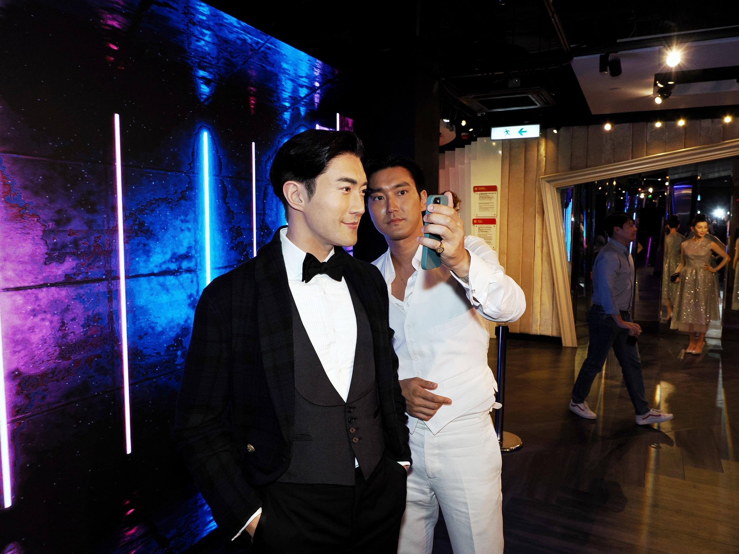他搞笑稱,自己比蠟像還要高,又以蠟像來解鎖智能手機。