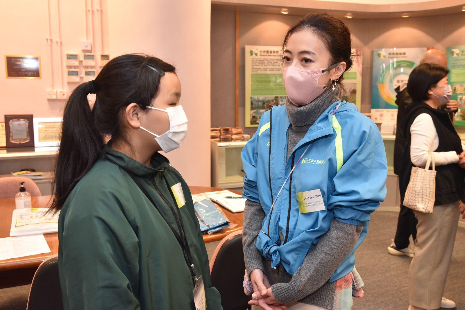心光學校始於1897年,120多年來幫助過無數視障人士,甘比覺得心光學校和團隊,造福及幫助了很多人,她期望未來可與心光學校並肩前行,令更加多的視障人士受惠。甘比又特別介紹22歲視障女生怡杰,她續說:「怡杰已經完全看不見,她剛完成演藝學院學位課程(小提琴專業),下年開始修讀碩士課程(2年)。她好叻4年學位課程由演藝學院提供獎學金,不用任何人粗心。可惜碩士課程不設獎學金,所以我們資助了她讀碩士課程,今天和她傾偈好開心,原來她6歲開始學小提琴,在完全看不到東西的情況下,雖然起初都覺得困難,但慢慢培養出興趣之後,佢已經好叻啦!」