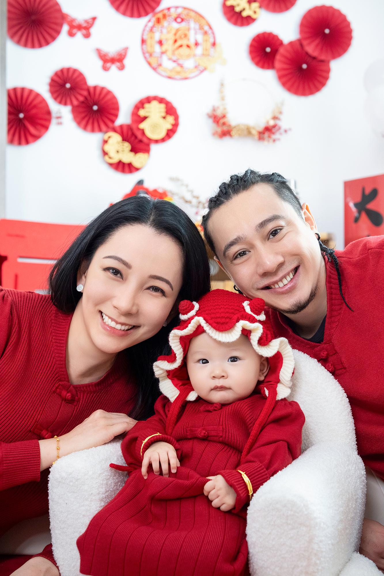 文凱玲(Connie) 去年與拍拖5年的圈外男友Jason結婚,同年順利誕下B女,雖然B女早產,但現時已經長得肥肥白白。Connie更特意安排囡囡及老公一齊影張充滿新年氣氛的全家福,相中見到他們一家三口穿到紅噹噹,囡囡更笑容滿面。Connie透露B女成日都會望住他們笑,現時她主力湊囡囡,而另一半放工、放假時也會幫手。她指囡囡每當肚餓的時候,便會找她,而想玩的時候便會找爸爸。
