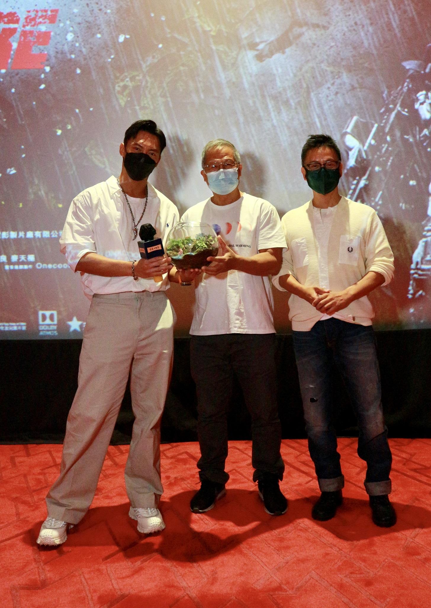 早前電影公司網上發布了一段電影刪剪片段,當中君豪飾演的蒼松博士慨嘆人類整病地球後,只是建了一大堆「金魚缸」(戲中的大型溫室——天幕)來困住自己,所以在特別場次中,謝君豪、張文傑與梁榮武交換紀念品時,兩人送出金魚缸予對方,提醒大家要愛惜地球,做好自身環保工作。