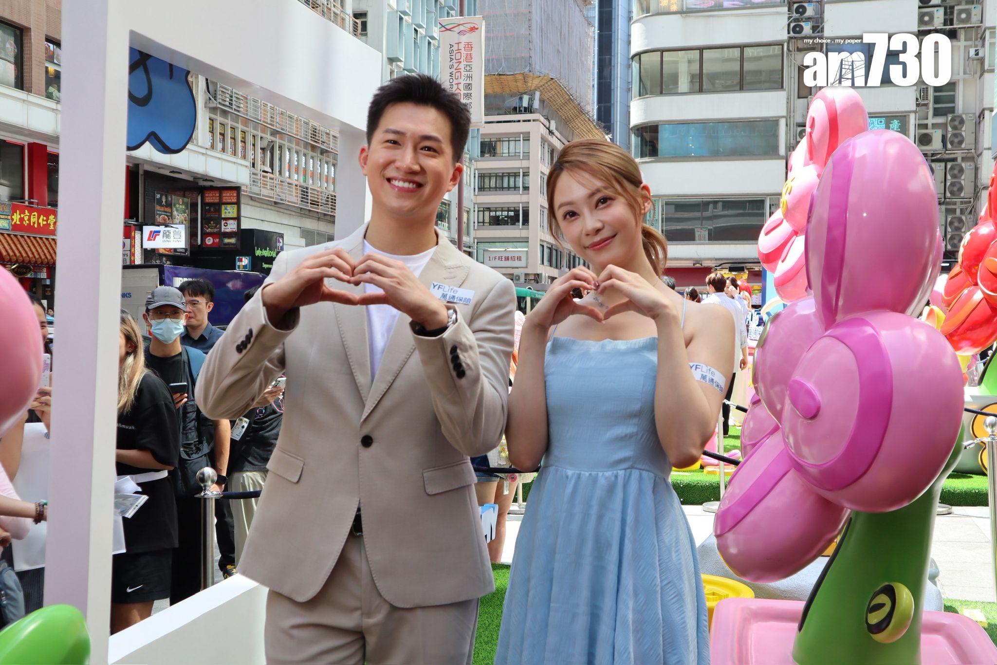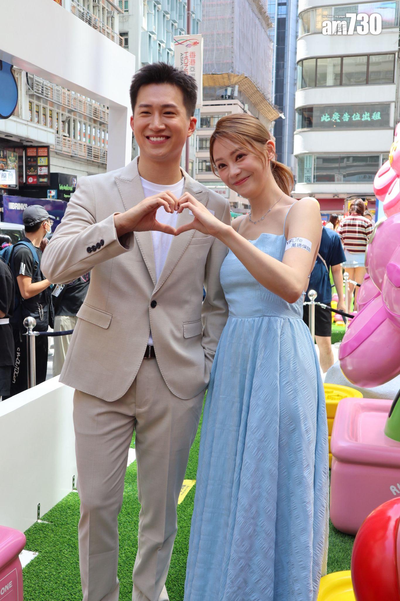 曾展望(GM)與葉蒨文(Sophie)今日(29日)以情侶檔現身尖沙咀出席活動甜蜜放閃。(娛樂組攝)