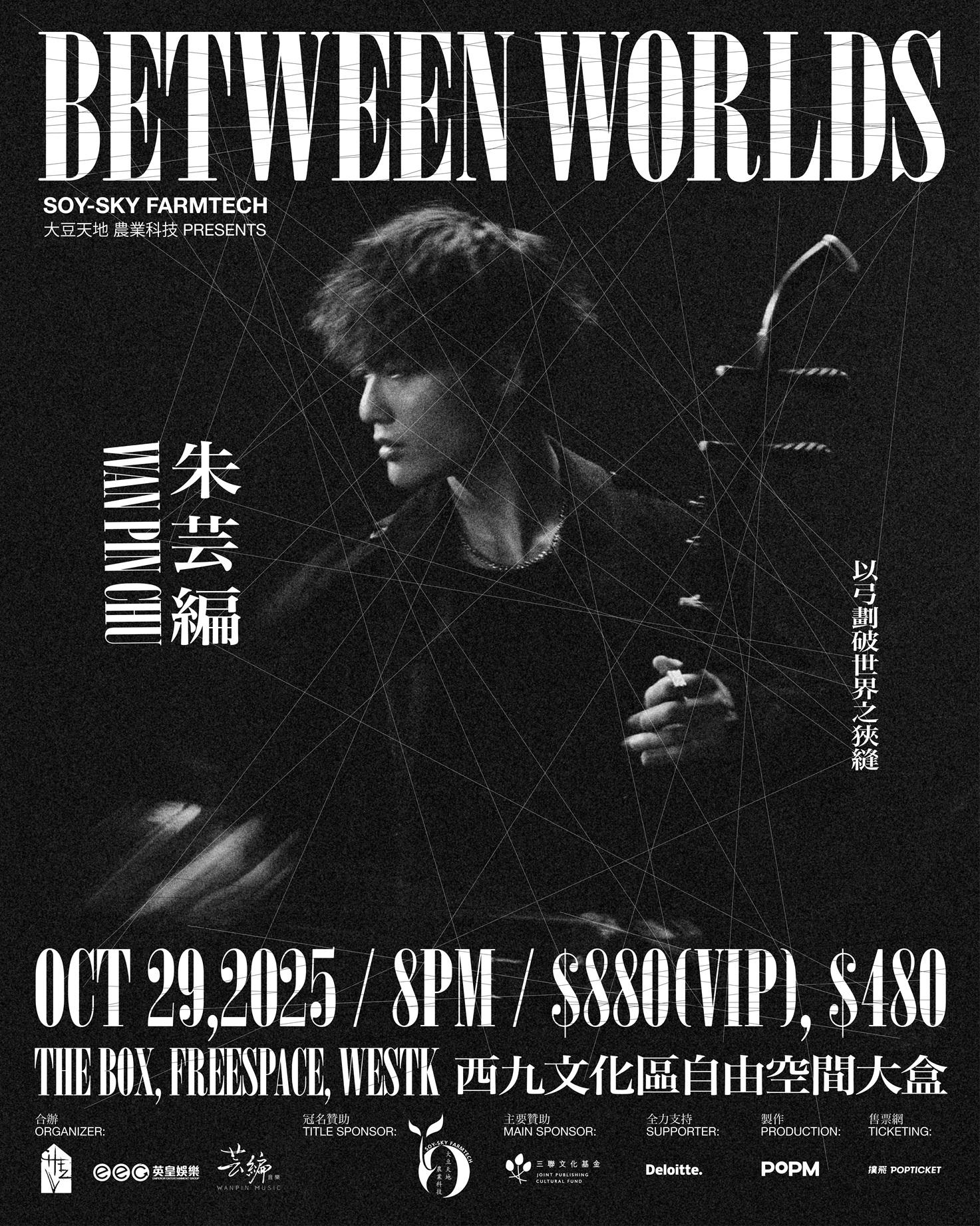 配樂師兼二胡演奏家朱芸編,將於下月在西九大盒舉行《BETWEEN WORLDS》音樂會,他將透過一段段精心編寫的樂章,分享他的個人體會,對生死以至不同世界之間的好奇。