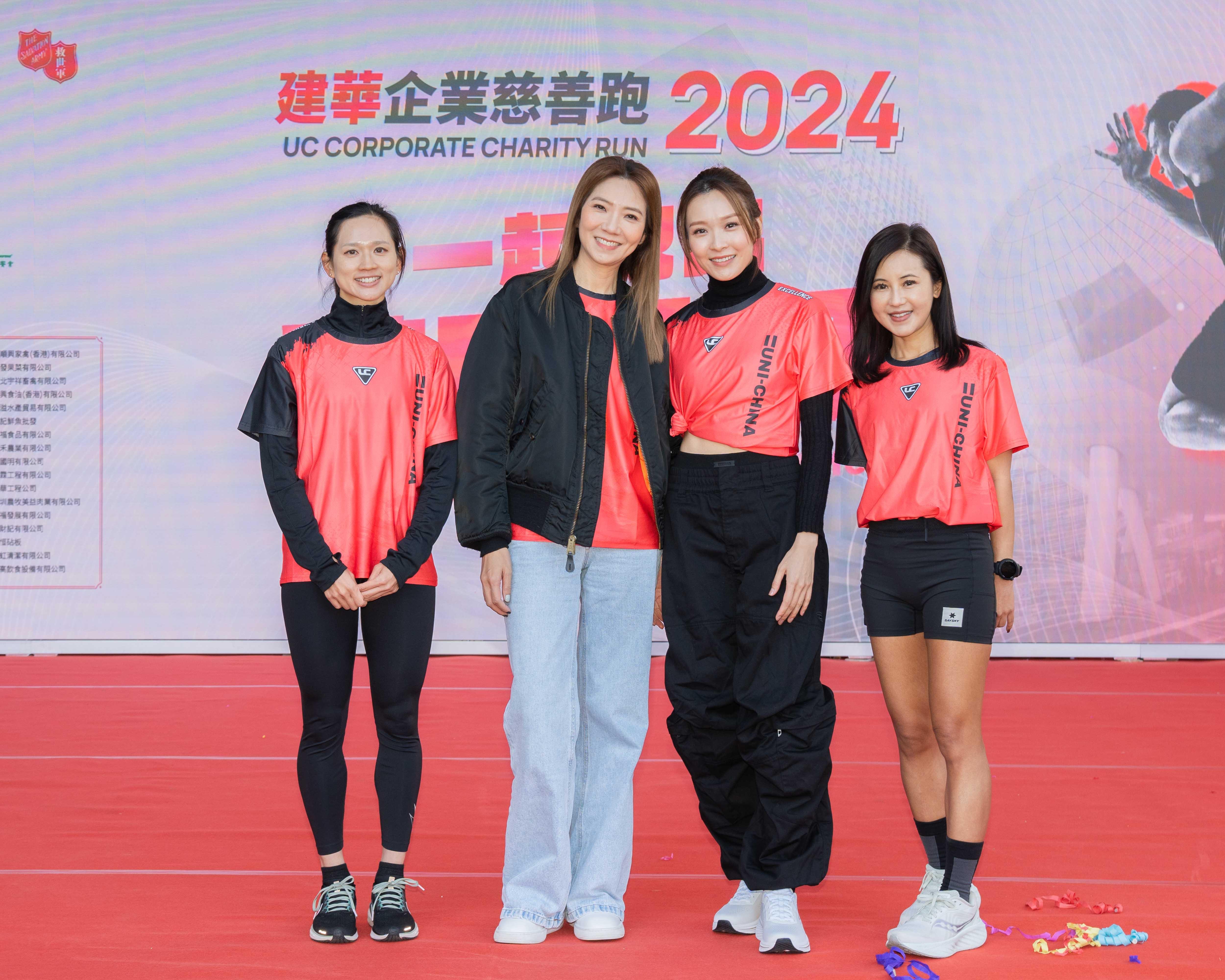 (左起)Crystal、車婉婉、Ali及Stephanie,一起出席「建華企業慈善跑2024」。