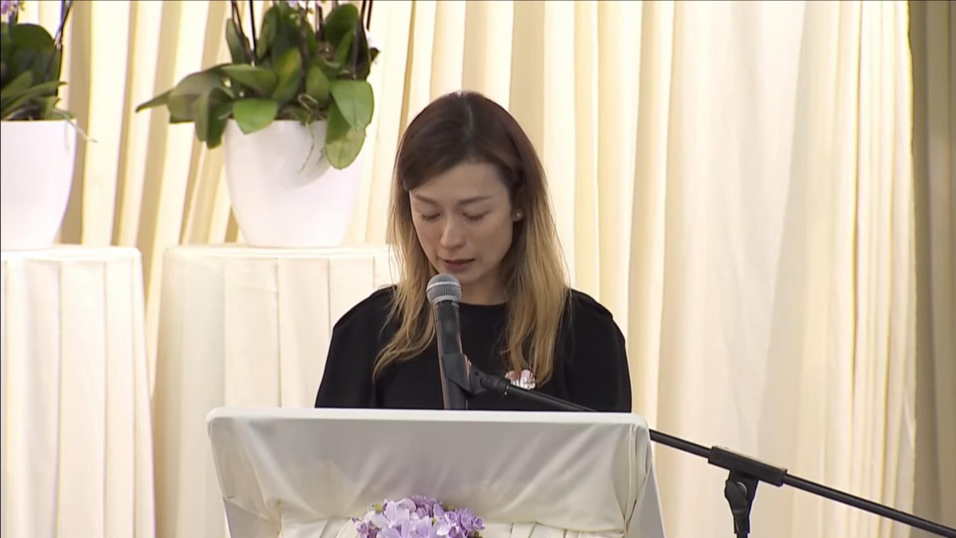 從追思會的直播見到,靈堂左手面的家屬位置有李思林、李秋林及丈夫何錦麟,但Bruce與繼女則在左方前排第二行,與盛智文同坐。追思會主持李岳奇表示邀請9位人士致辭,包括有伯樂姚謙甄妮、蕭亞軒、華納音樂高層Jonathan Serbin、兩位三藩市同學、歌迷代表楊楊、好友馮余慕莊及經中國夢之星出道內地男歌手阿來AraiAidarhan。致辭名單有一部份與扶靈名單重疊。