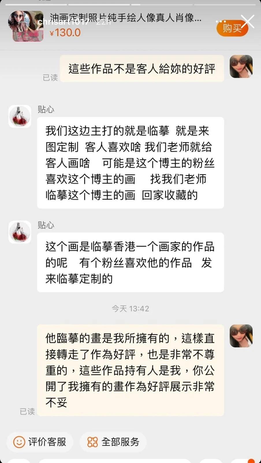 及後,Chris分別上載8月8日與淘寶賣家對話截圖以及三張蓋鳴暉油畫,表示該淘寶賣家偷咗佢作品並於8月26日假扮買家留言好評,指當時係喺TVB化妝間繪畫,所以化妝間內的認證特別多。對話截圖顯示,該淘寶賣家起初表示店舖係來圖訂制,該畫係臨摹香港一個畫家嘅作品,當Chris向其指出係畫作原作人及感到傷害後先成功令淘寶賣家跪低道歉。